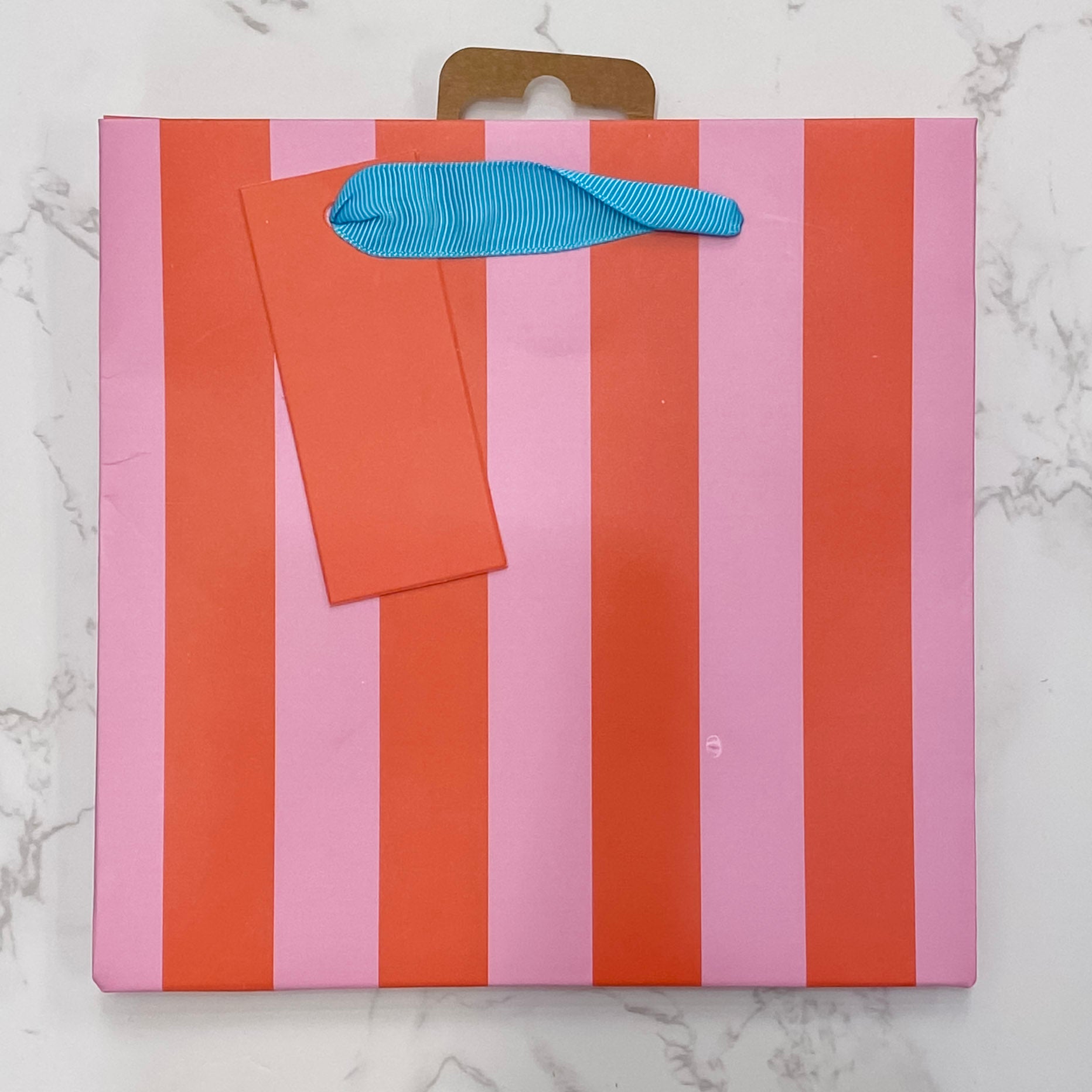 Bring energy to your presents with the Pink and Orange Stripe Mini Gift Bag. Its bold, vibrant stripes are perfect for adding a playful flair.