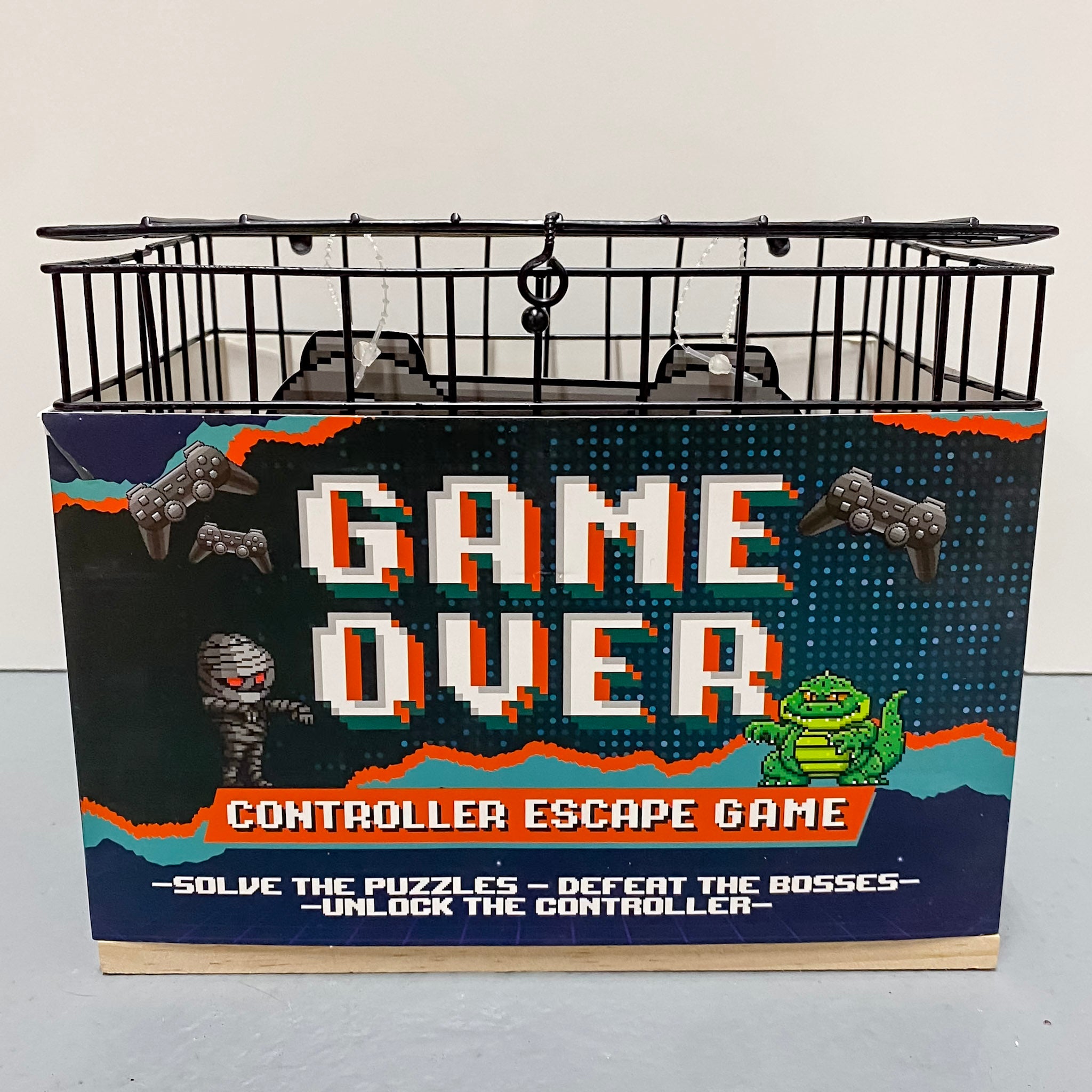ZAP! – You’ve been trapped in the arcade realm, the only way to escape back to reality is to defeat the video game bosses. The twist? They’ve locked your video game controller in a cage! Fight through the four Boss Cards to uncover the final 4 digit padlock code, unlock your game controller before it’s too late – otherwise it’s GAME OVER. The perfect birthday or Christmas gift for men who love video games – maybe a little too much! Lock away their controller and work together to release it. With 4 different levels and bosses to defeat, this escape room game will put your puzzle solving abilities to the test.