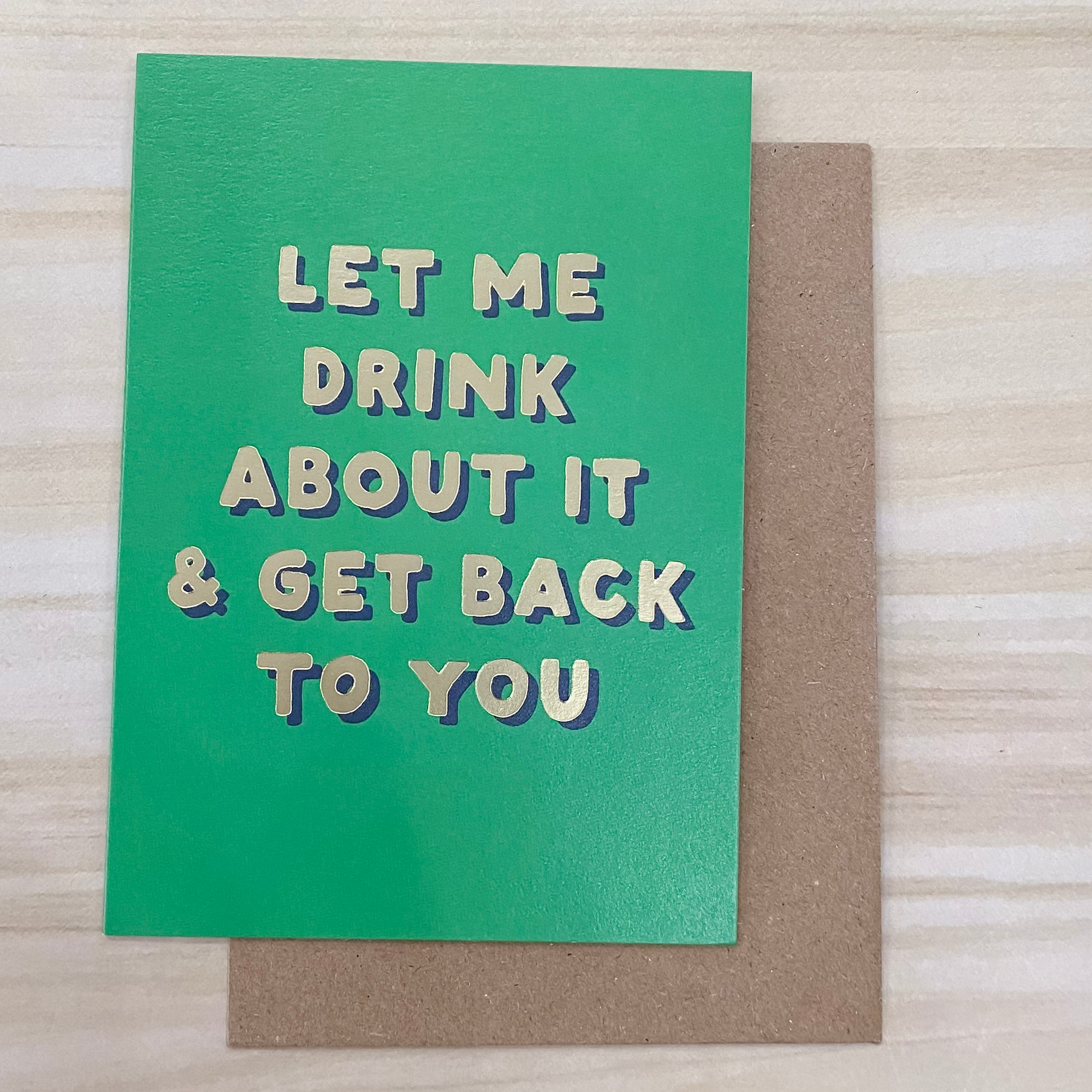 Unleash a burst of laughter with this witty “Let Me Drink About It” Greeting Card. Its playful humor makes it a perfect addition to any special occasion.