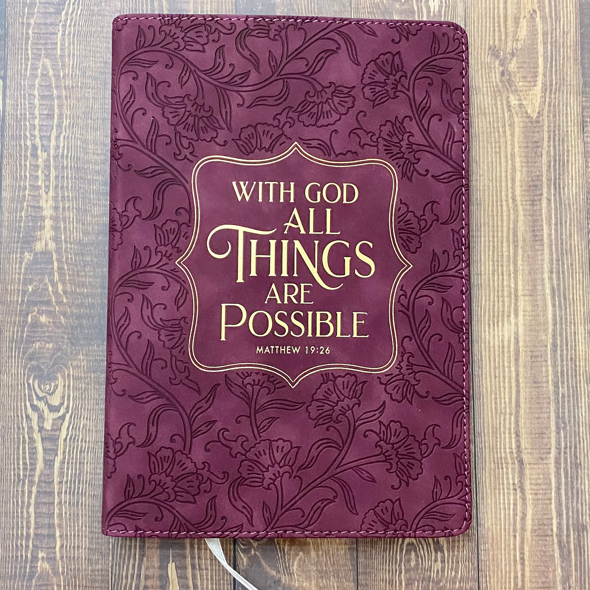 Things Are Possible Burgundy Faux Leather Classic Journal - Matthew 19:26