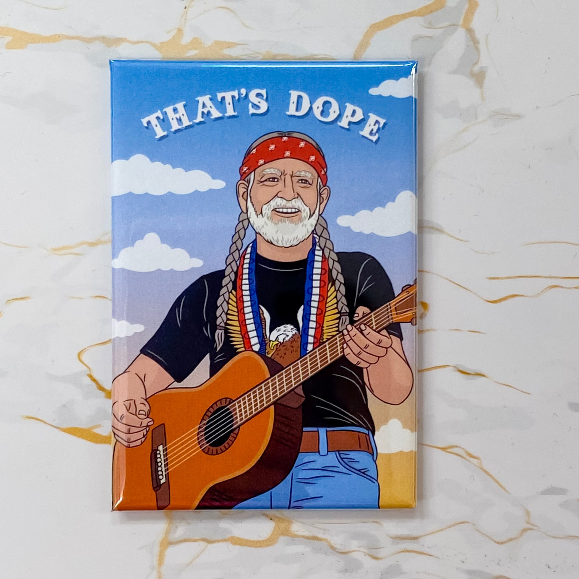Celebrate your love for Willie Nelson!  This strong magnet is a great gift or cool addition to your fridge.