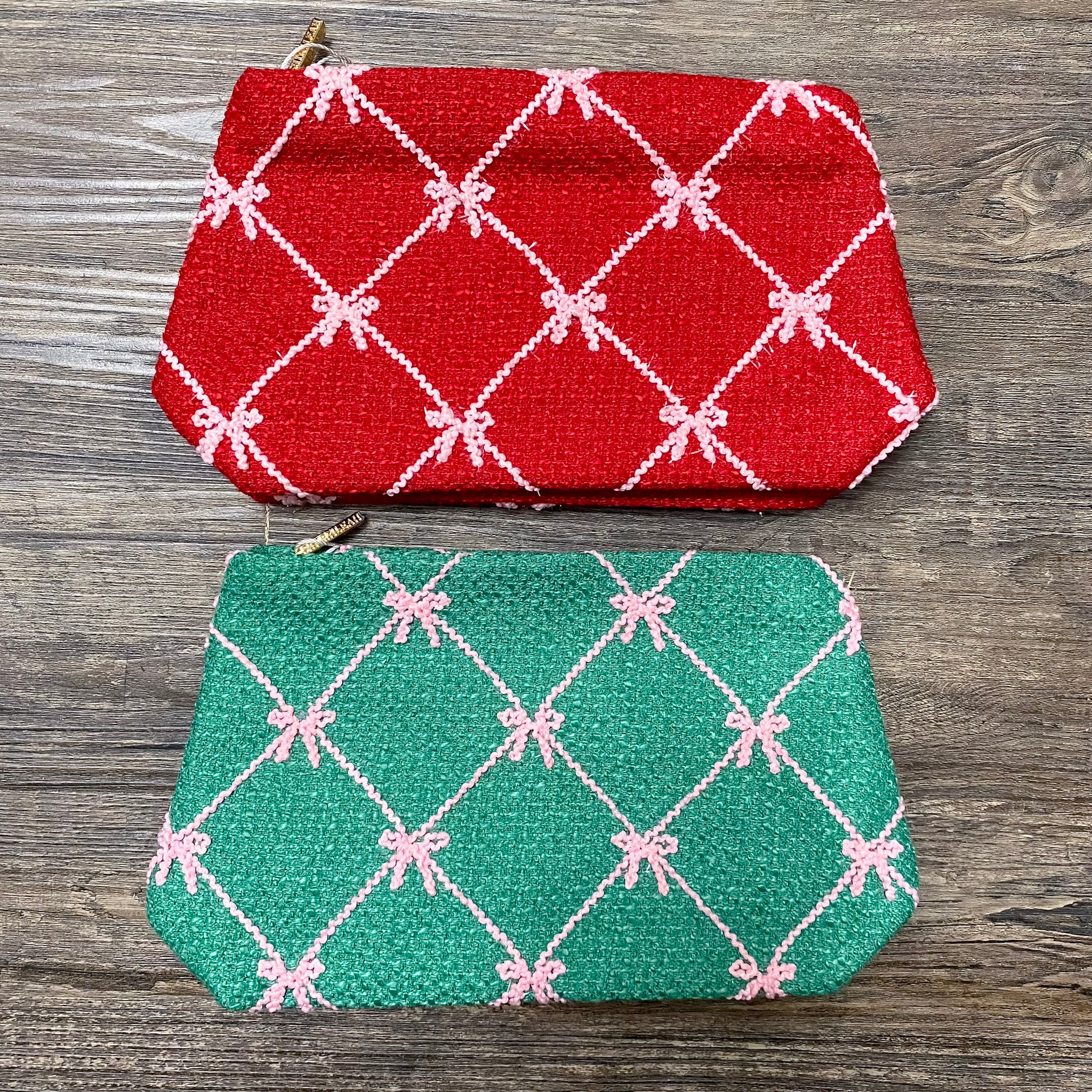 Tinsel Bow Zip Pouch in Green