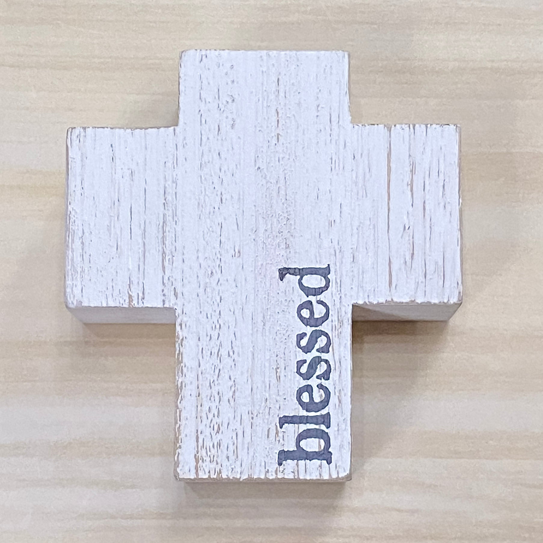 Lightweight 3D textured paulownia wood cross. Whitewashed natural wood finish.
