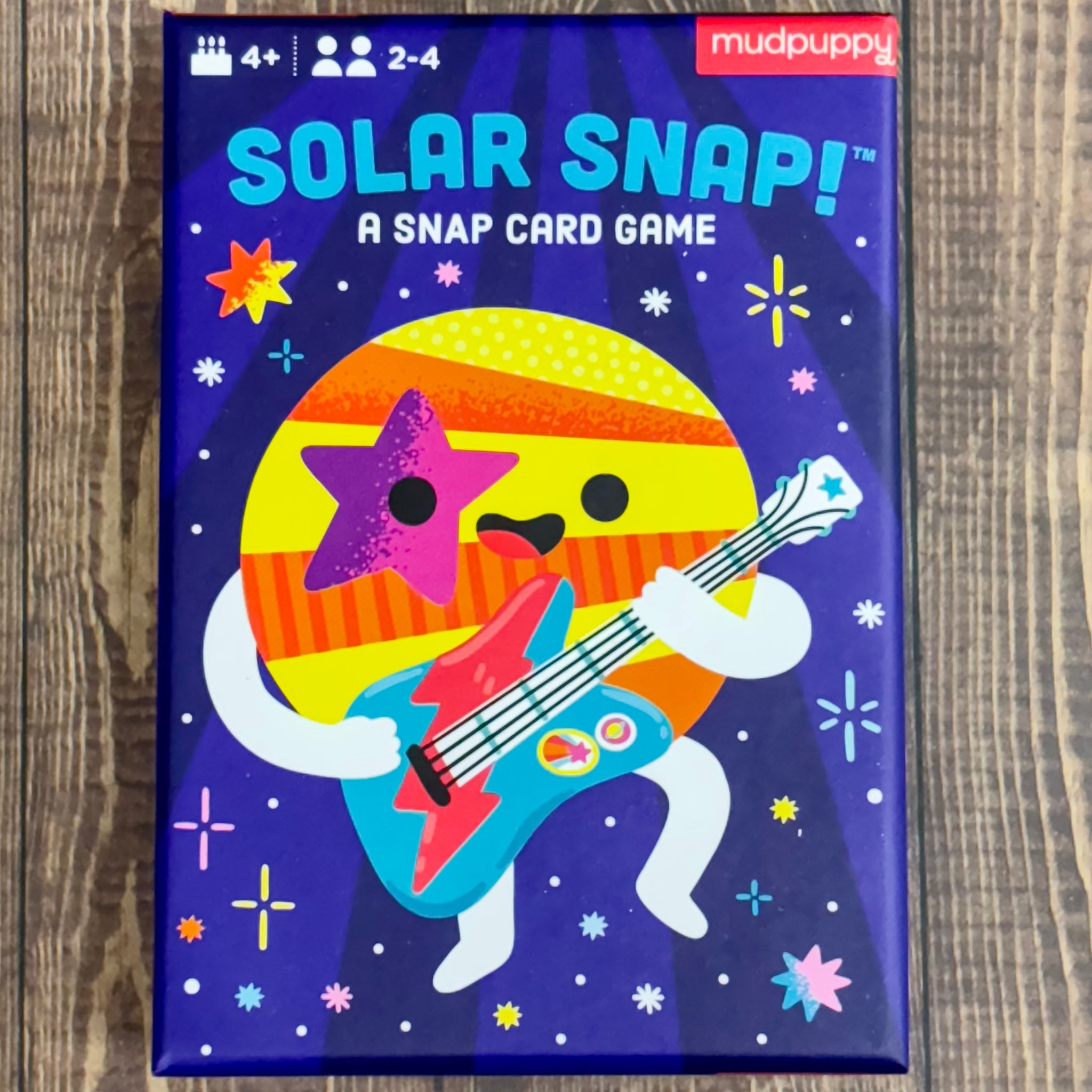 Solar Snap! from Mudpuppy brings an exciting, fast-paced twist to the classic card game of Snap. In this version, players race to spot pairs of matching cards and shout “Snap!” to win the round. The game features quirky artwork with an outer space theme, including a musical, Bowie-inspired planet on the cover. Perfect for space lovers and fans of fun, energetic games, Solar Snap! offers an engaging and entertaining way to improve focus and quick reflexes.