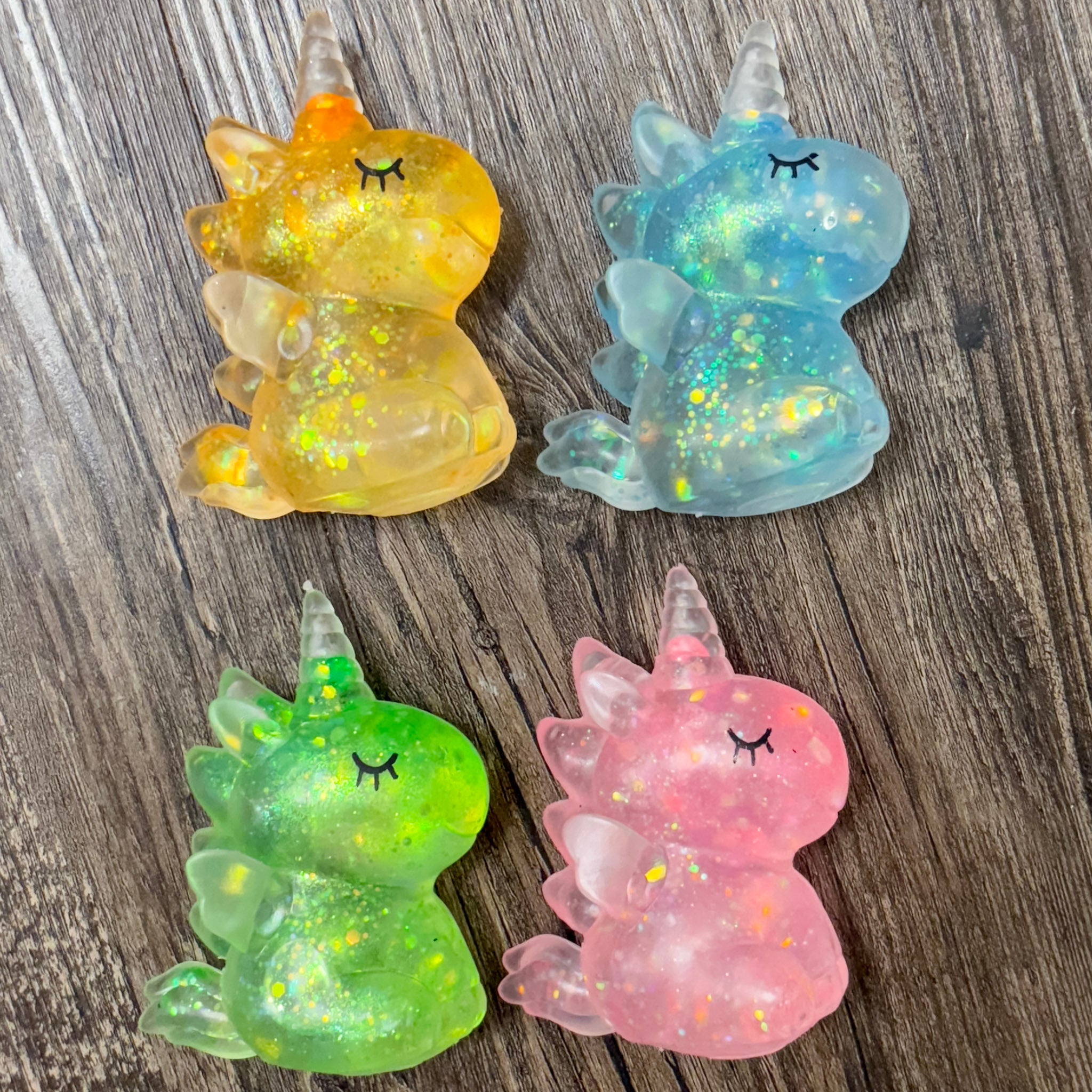 This glitter-filled unicorn is ready to sparkle, squish, and sprinkle a little joy into your day. Satisfyingly soft and super sparkly, give it a squeeze and watch the glitter swirl, it's like holding a mini unicorn daydream in your hand!