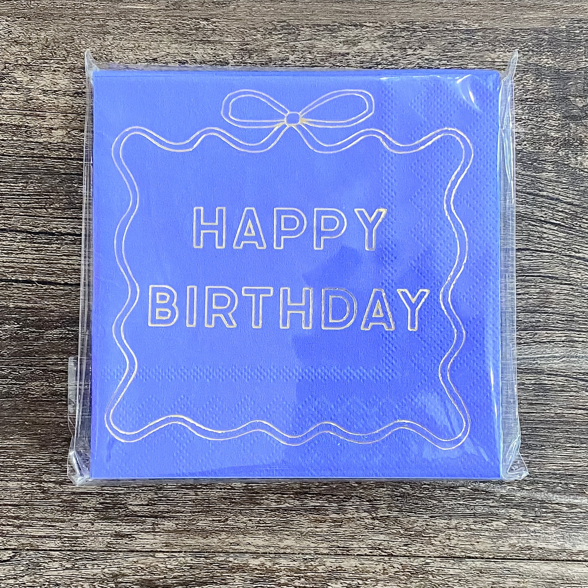 Happy Birthday Blue Bow Beverage Napkins