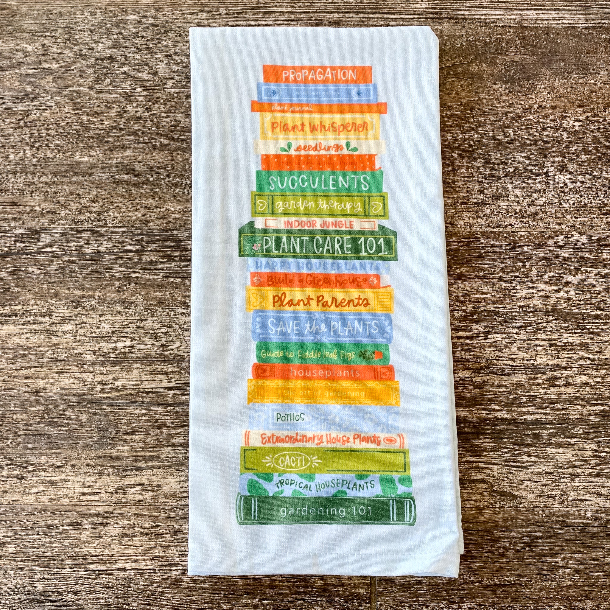 Celebrate your love for reading and greenery with our charming Plant Book Stack Tea Towel! Featuring a delightful design that showcases an array of plant-related book titles, this tea towel is a perfect blend of function and personality for book lovers and plant enthusiasts alike.