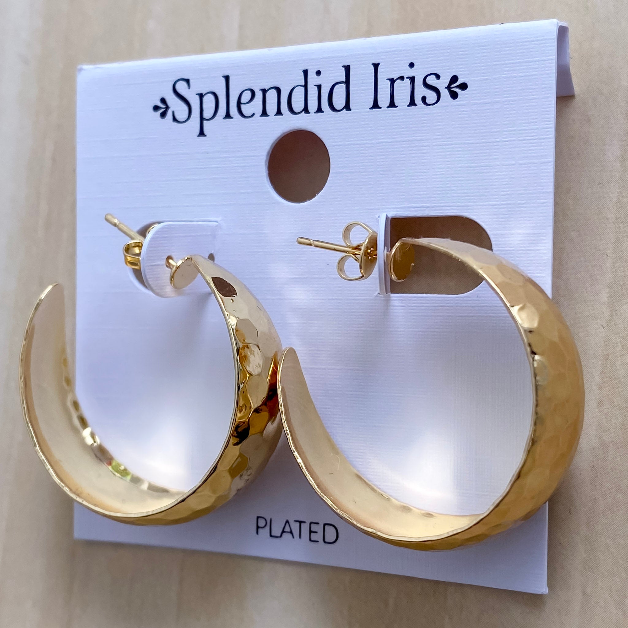 Add timeless elegance to your look with these gorgeous 18K gold-plated rounded hoops. Featuring a textured design, these statement earrings exude sophistication and style. Perfect for dressing up or adding a touch of glamour to everyday wear, they are a must-have for any jewelry collection.