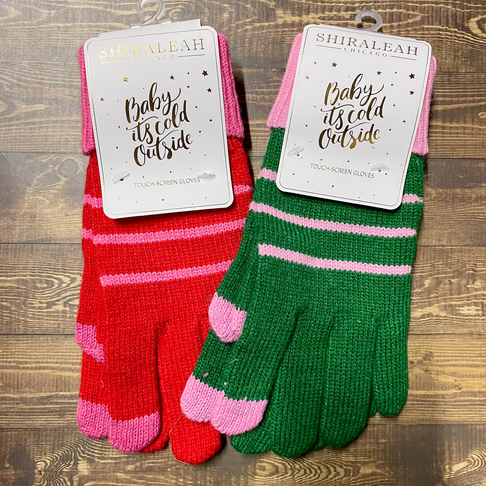 Stay warm and connected with the Allison Touchscreen Gloves. These cozy knit gloves come in cheerful color combos with playful stripes and contrast cuffs, perfect for brightening up chilly days. Designed with touchscreen-friendly fingertips, they let you text, scroll, and snap pics without taking them off. Snug yet stretchy, they’ll keep your fingers toasty whether you’re on a coffee run or heading out for a snowy stroll.