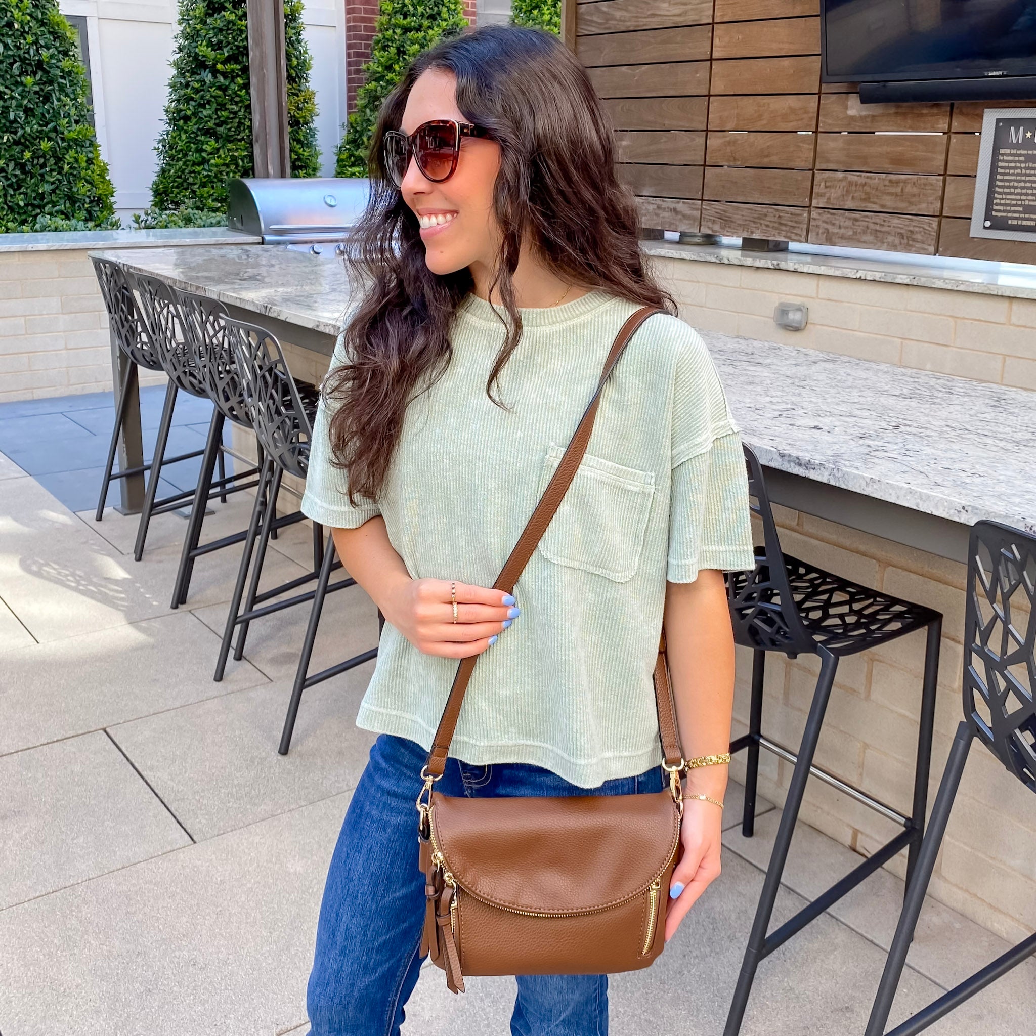 Jen & Co Aubree Flapover Crossbody Bag - Brown
