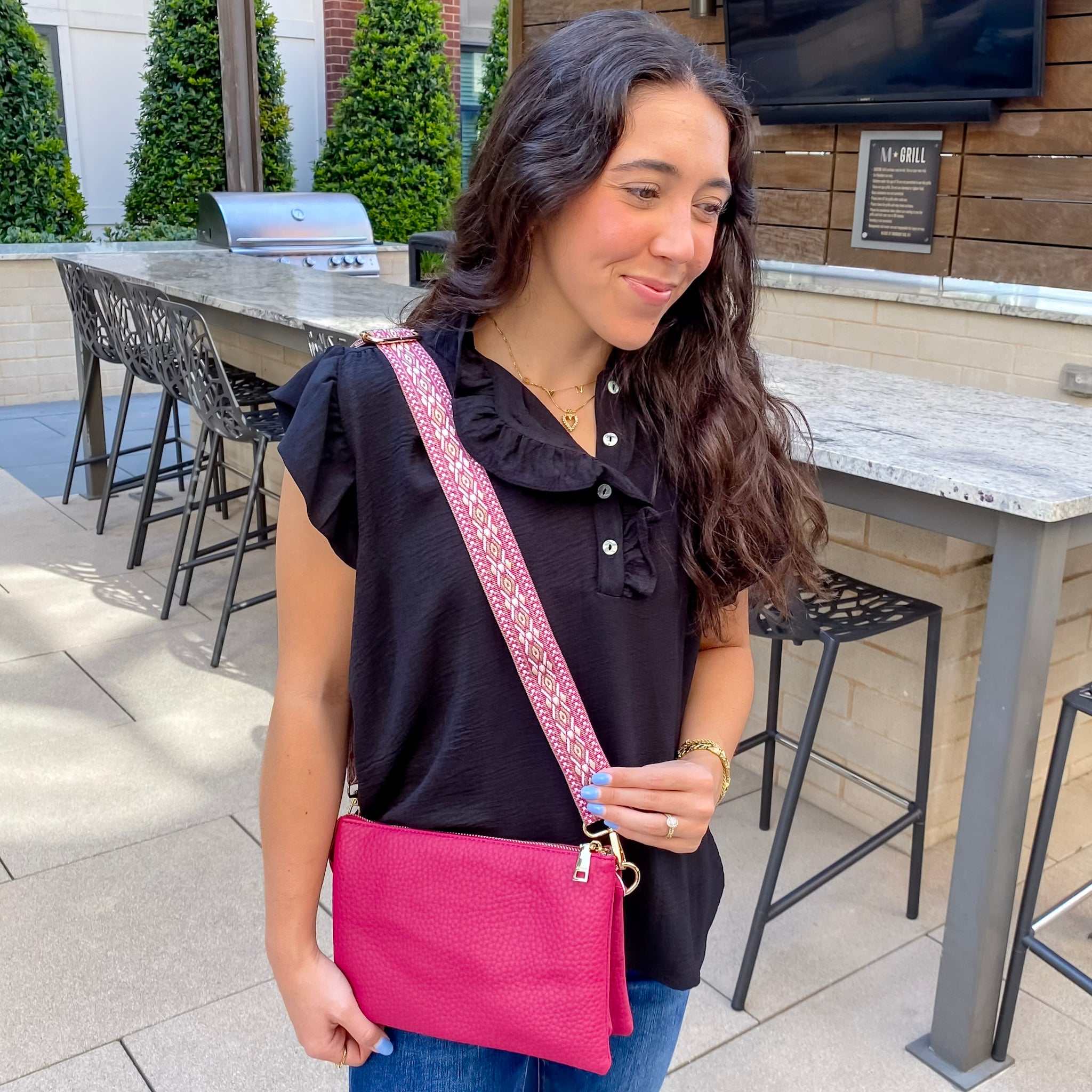 The big sister to our Riley, Izzy has many of the same great features with more space. She has the same two major compartments, a middle zip compartment, and inner cardholders. Izzy also comes with a wristlet strap and a fashionable guitar strap!