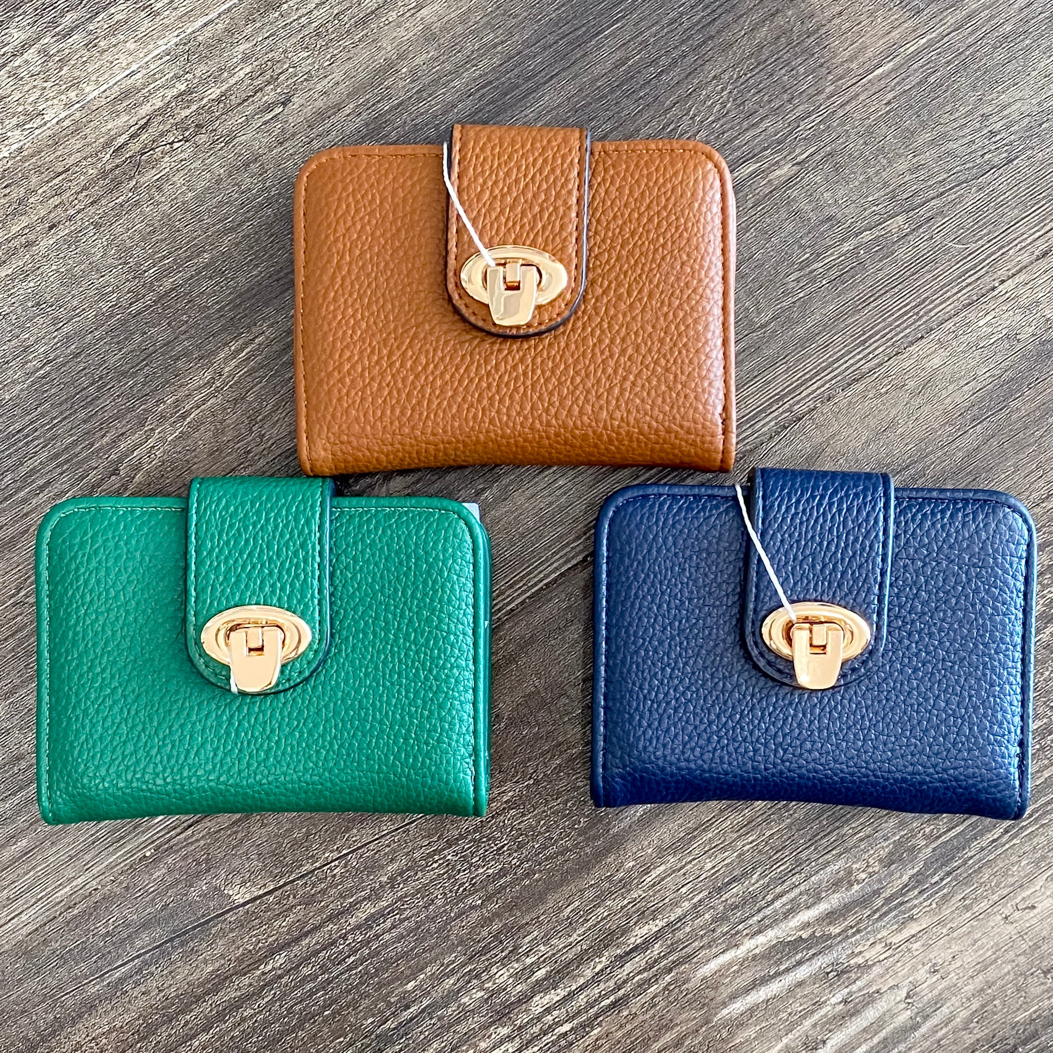 Jen & Co Margot Wallet w/ Twist Lock Closure! Elegant bi-fold wallet featuring a secure metal twist lock closure. Inside, it offers multiple card slots, ID slots, and slip pockets to organize your essentials with style and ease