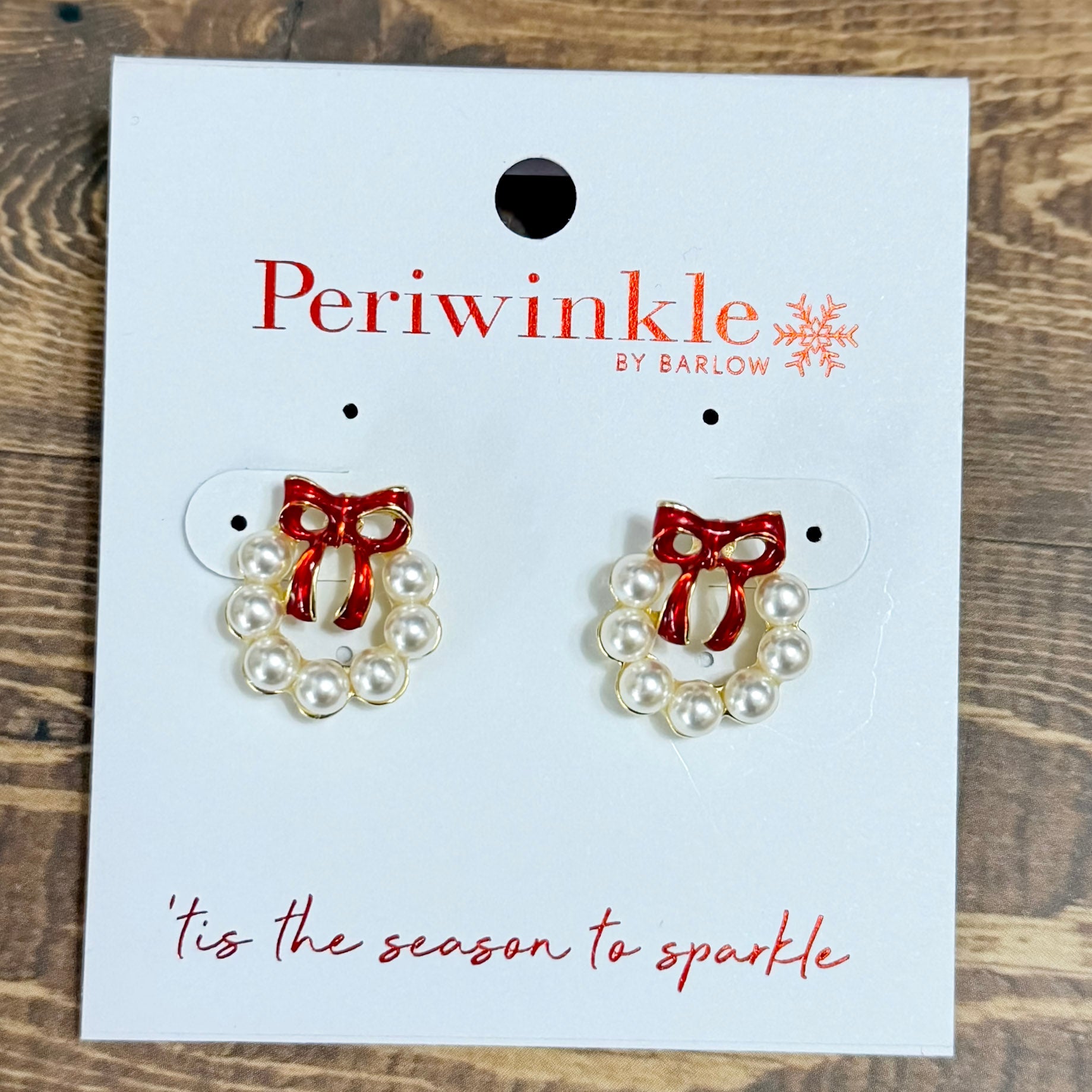 Celebrate the season with these elegant pearl wreath earrings, topped with a festive red bow. Chic and charming, they add a touch of holiday sparkle to any outfit and make a perfect gift for Christmas lovers.