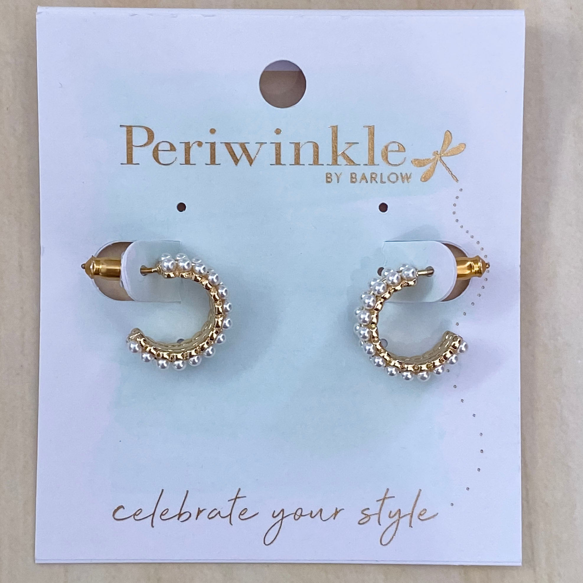 These earrings feature lustrous pearls in a petite, round shape, set in or accented by warm, polished gold. The overall look is understated yet refined, making them perfect for everyday wear or subtle elegance in formal settings.