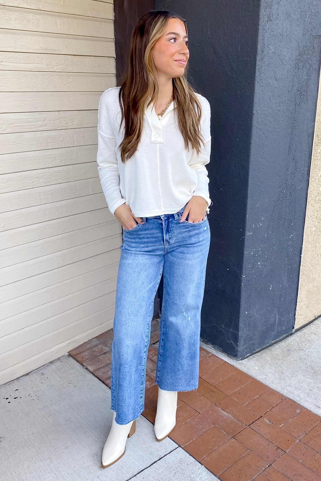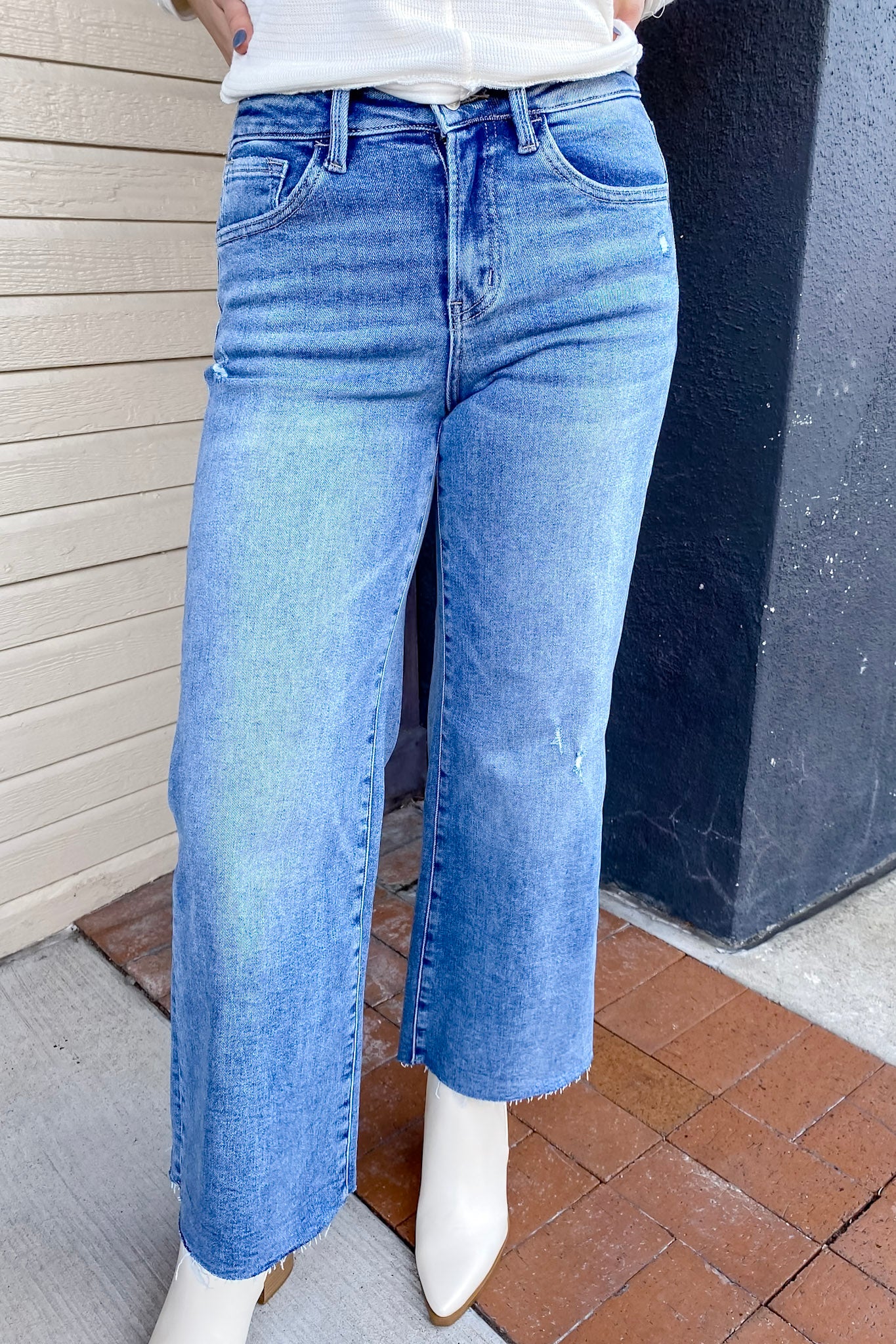 The ultimate combination of comfort and style. Olivia Mischief Super High Rise Crop Wide Leg Denim By Vervet!