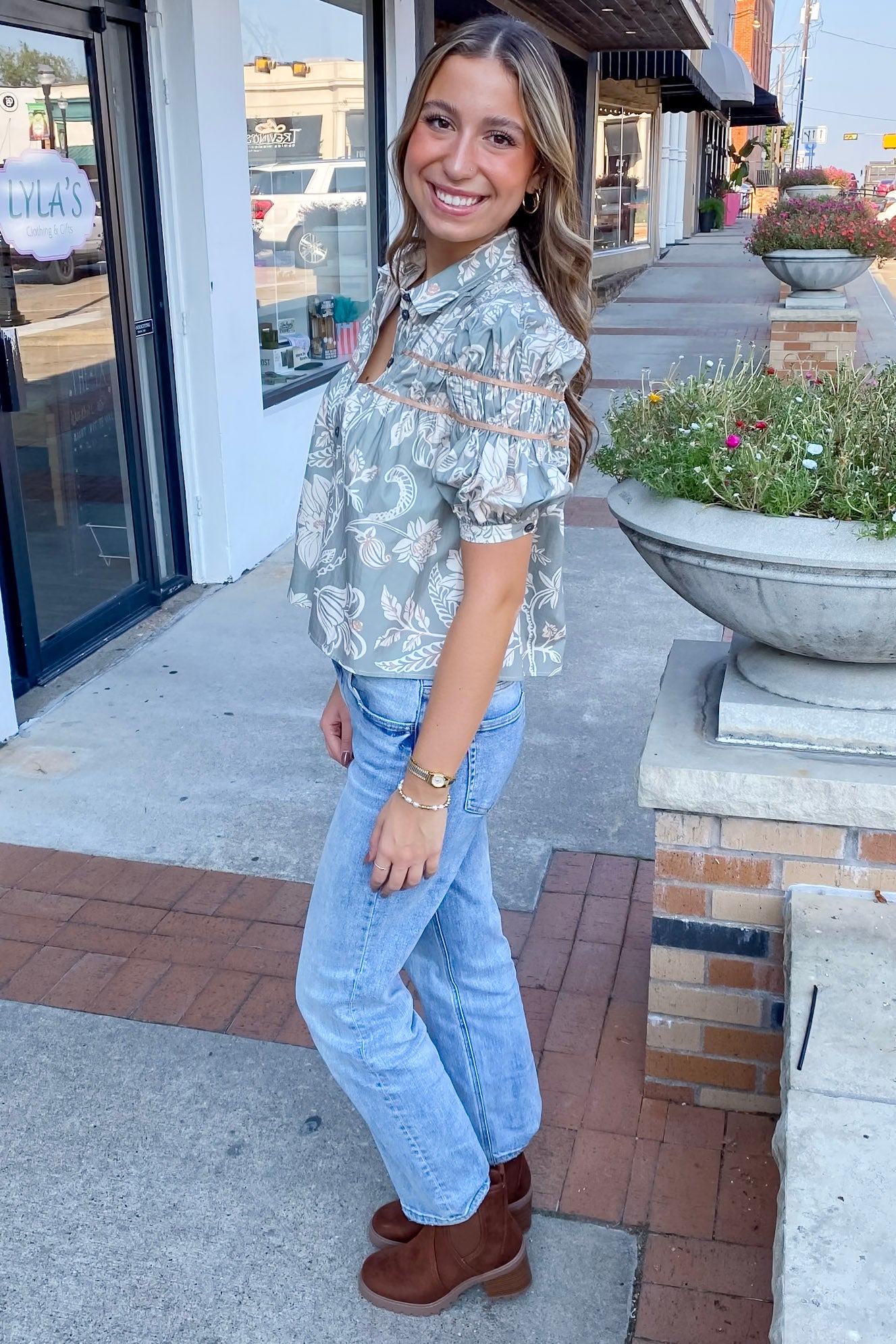 Meet your new fall favorite—the Olive Petal Blouse! This button-up beauty features a soft olive green base layered with creamy floral detailing and dainty pleating across the bodice and sleeves. With its puffed sleeves, pintuck accents, and an easy relaxed fit, this top brings a touch of sweet nostalgia to your wardrobe. It’s polished but playful, and oh-so-ready to take you from coffee dates to cozy dinners in style.