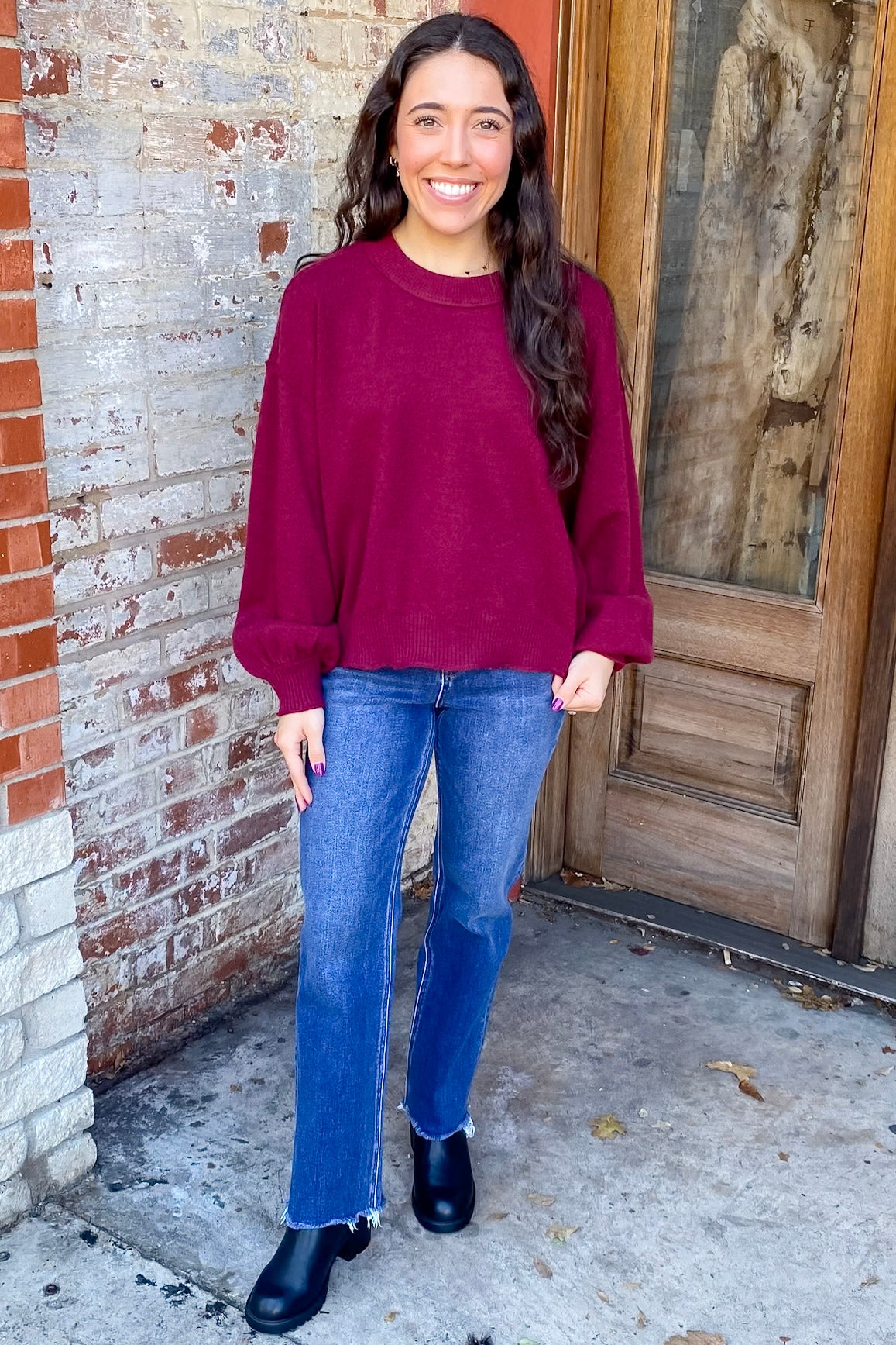 The Special Day Wine Sweater is that effortlessly cute piece your wardrobe's been missing. With its rich wine-red hue, relaxed boxy fit, and soft knit texture, this short-sleeve sweater is comfy and polished. The wide cuffed sleeves and ribbed hem add just enough structure to keep things elevated, while still being an easy throw-on-and-go kind of top. Perfectly cropped to pair with all your high-waisted bottoms, it’s the ultimate balance of cozy and cool.