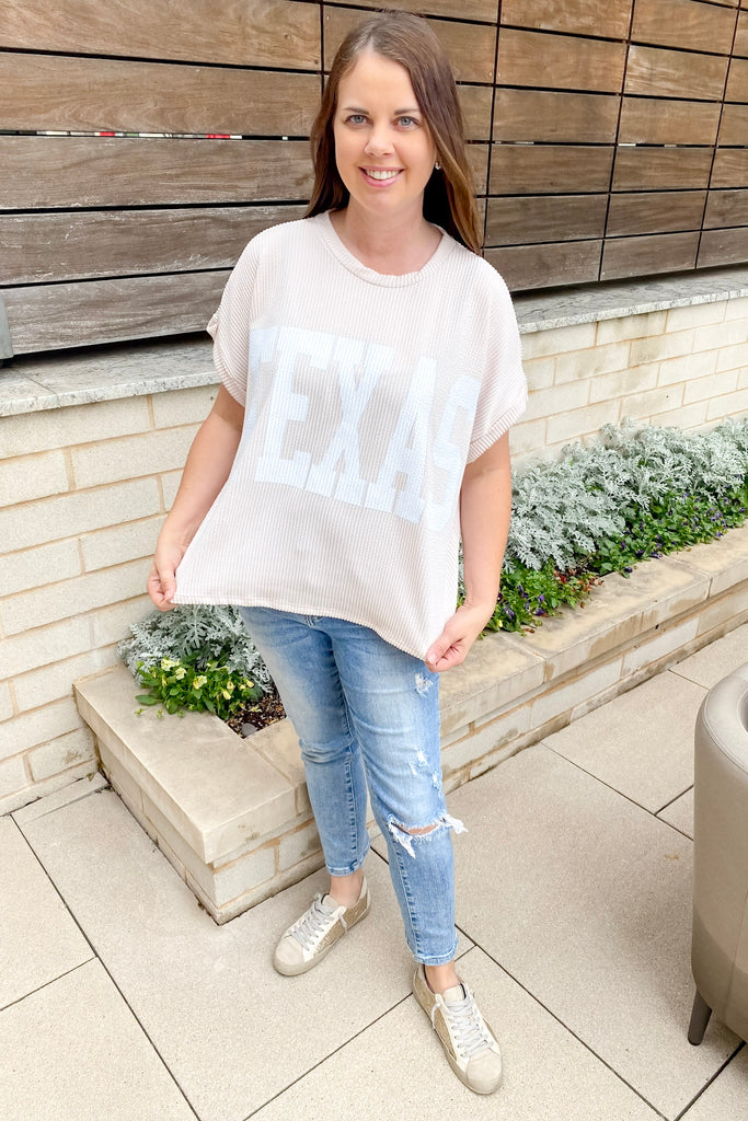 Texas Corduroy Graphic Cream Short Sleeve Top