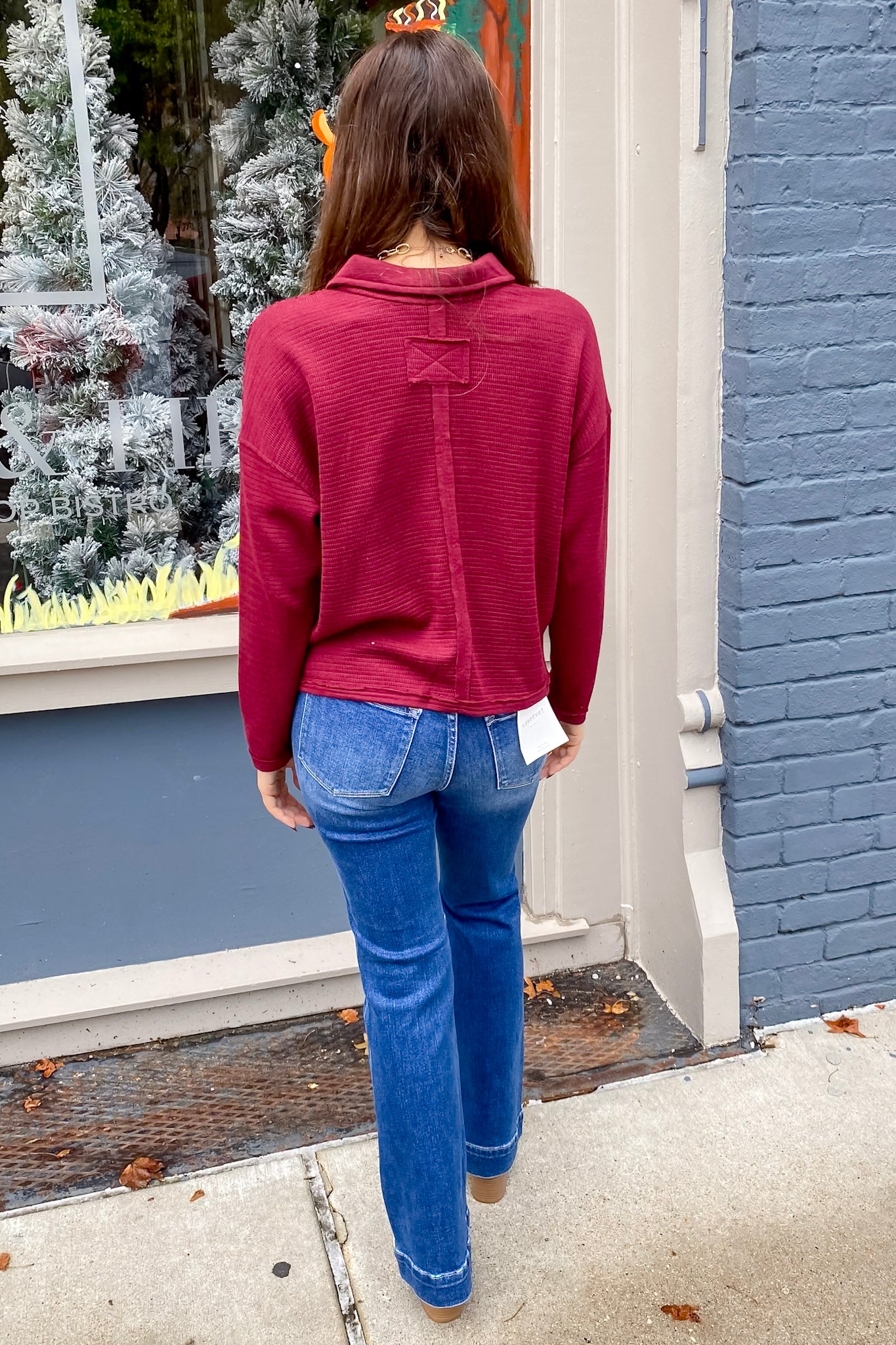 The perfect winter top does exist—and it’s this rich oxblook-hued collared pullover. Made in a soft thermal knit with raw edge details and a relaxed fit, this one is equal parts comfy and put-together. The deep burgundy color is chef’s kiss for December, and the collared neckline adds just the right amount of structure for a casual day out or a festive night in. It's winter layering made easy.