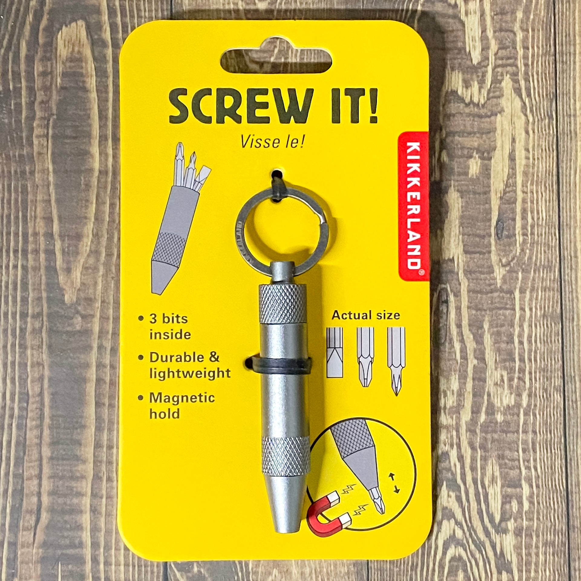 Always come prepared! Mini keychain screwdriver contains 3 bits for eyeglasses, electronics, furniture, and more. Has a magnetic hold for bits