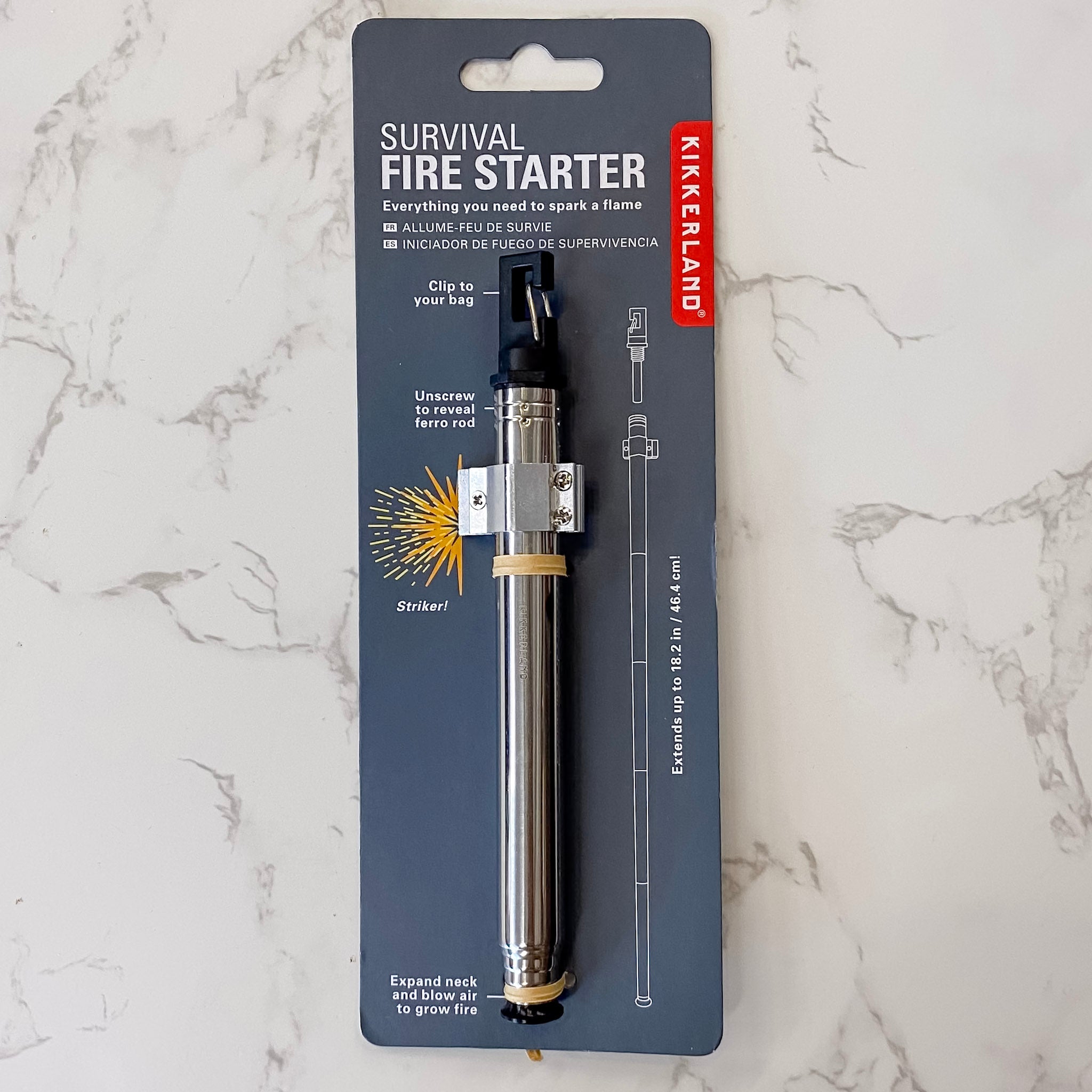 This tiny tool is a must have for campers and backyard bonfire enthusiasts. Bring it along on all of your adventures and you'll always be prepared. Start a fire with just a strike - no fuel necessary! First, unscrew the ferrocerium rod from the bellows and the striker to ignite tinder. Second, extend the bellows and blow to grow the spark into a flame.
