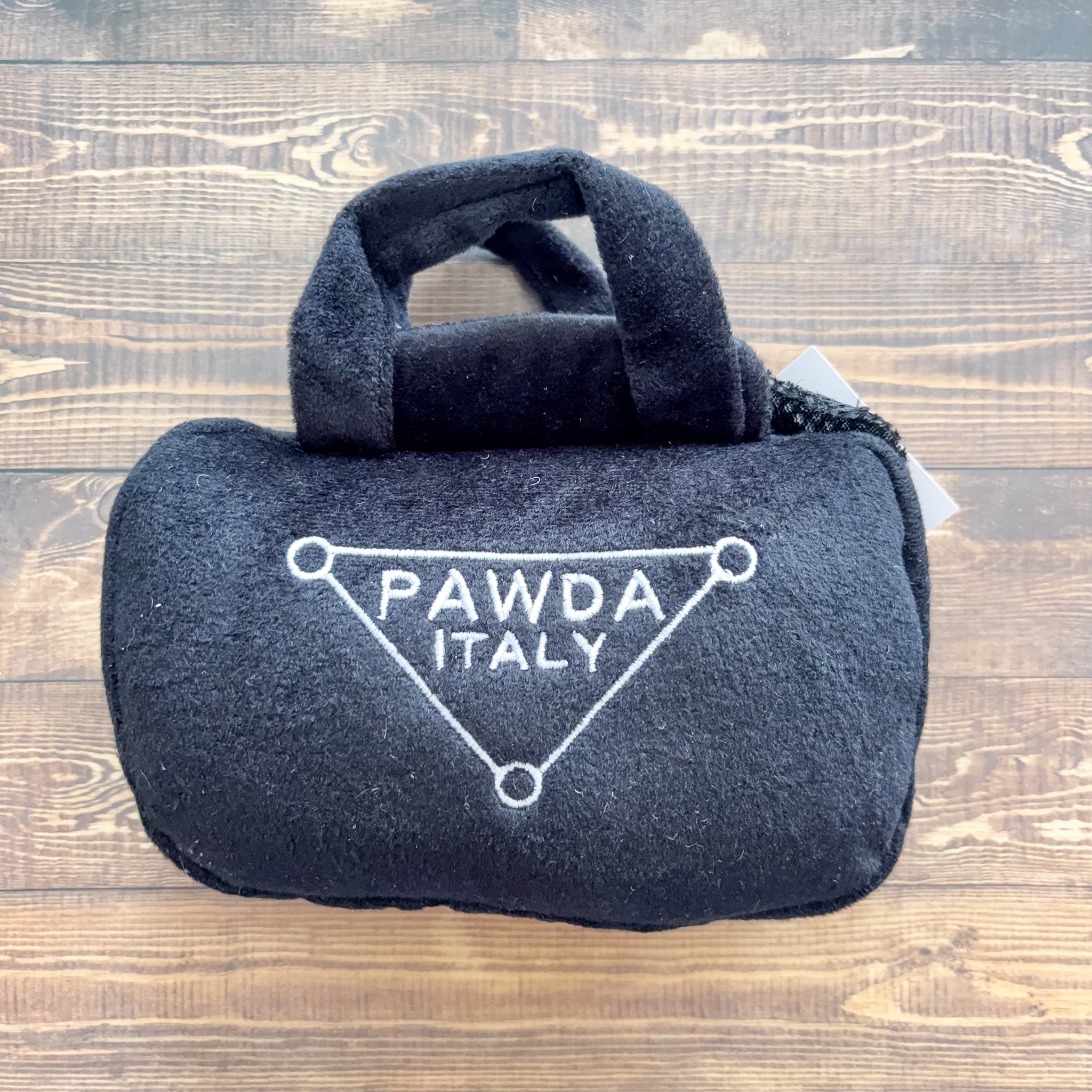 The doggo chews Pawda–or at least they can now, with this sleek Pawda Handbag toy! The plush, velvety exterior hides a devilishly-delightful squeaker inside that will drive your dogs crazy! This Italian furshion accessory is available in two sizes for pampered pups of all dental dimensions.
