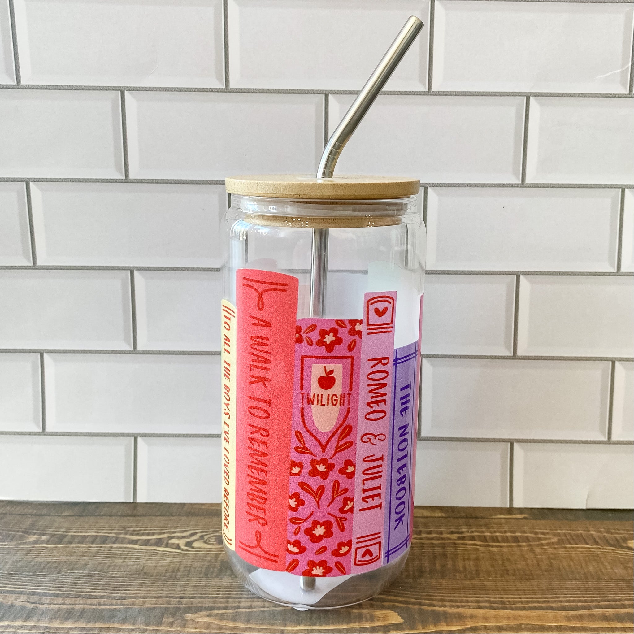 Elevate your reading experience with our Romance Novels Glass Can. Enjoy coffee, tea, or sparkling water in style as you immerse yourself in the world of romance novels. A perfect gift for avid readers who find joy in the pages of love stories, this hand-illustrated design features titles such as Gone with the Wind, Wuthering Heights, Outlander, Me Before You, Twilight, The Notebook, and more!