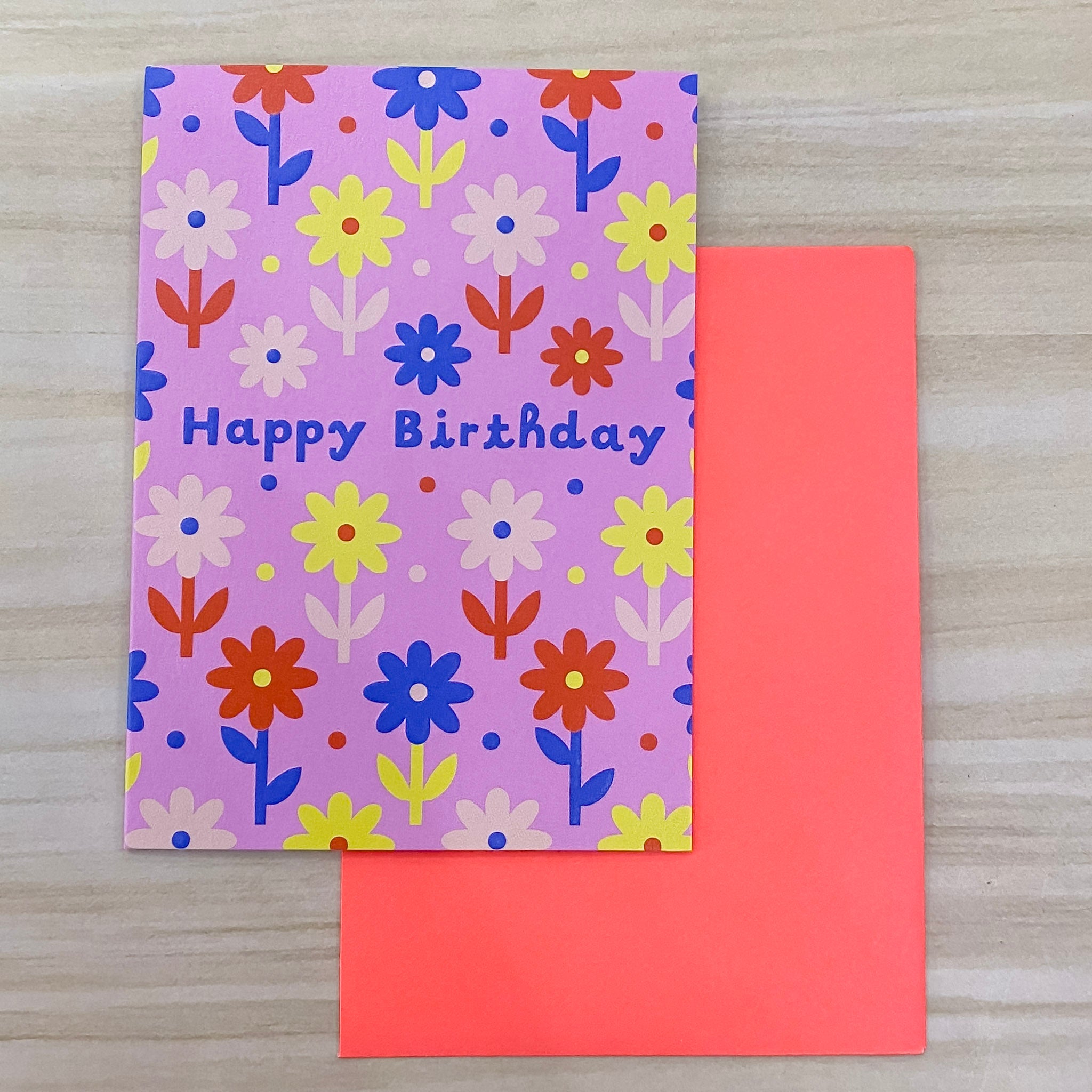 This colorful birthday card includes cartoonish flowers and pops of color that makes this card not only cute but also very eyecatching. A wonderful card to get for a special someone's birthday!