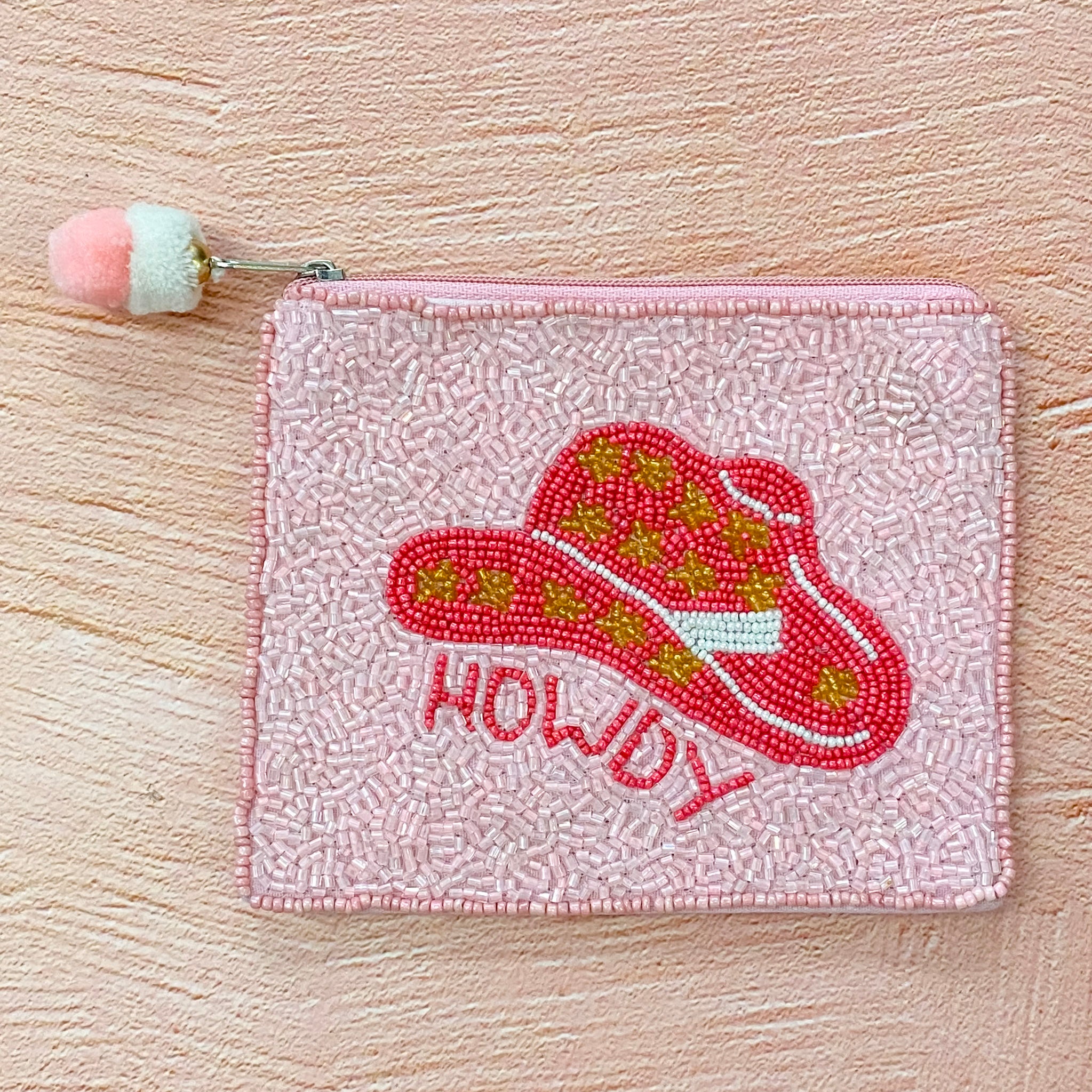 This vibrant beaded pouch brings Western charm to life with the word “Howdy” playfully spelled out in bold beads, topped with a beaded cowboy hat for extra flair. Bursting with color and personality, it’s the perfect accessory for adding a fun, spirited touch to your outfit—whether you're headed to a festival, girls’ trip, or just embracing your inner cowgirl.