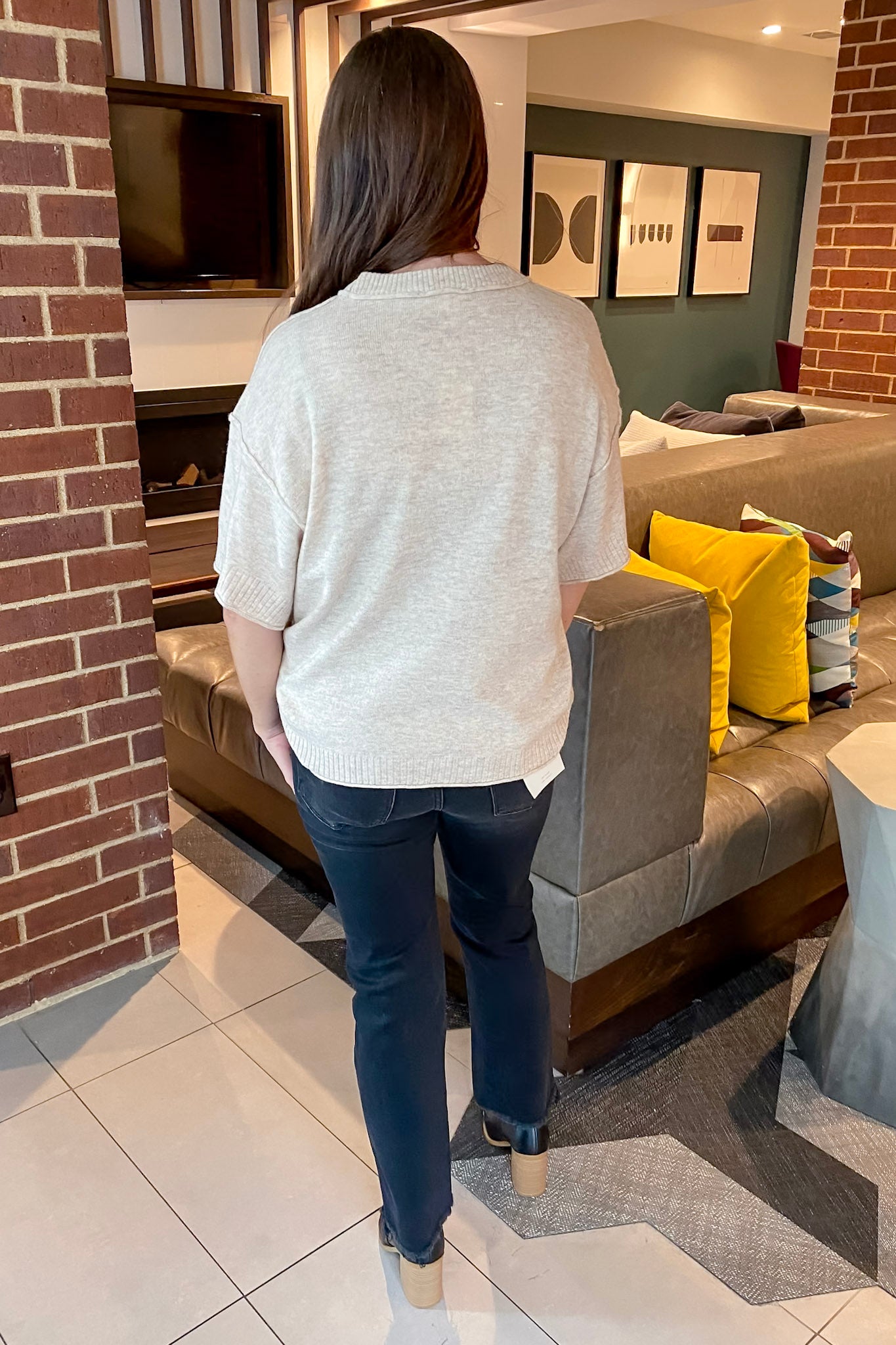 Say hello to your newest layering BFF. The Believe It Or Not Oatmeal Top delivers the perfect blend of cozy texture and effortless polish. With its bold cream hue, soft ribbed trim, and boxy fit, this top is equal parts classic and modern. The lightweight knit makes it ideal for transitional fall weather—wear it solo or layered under a jacket for extra flair.