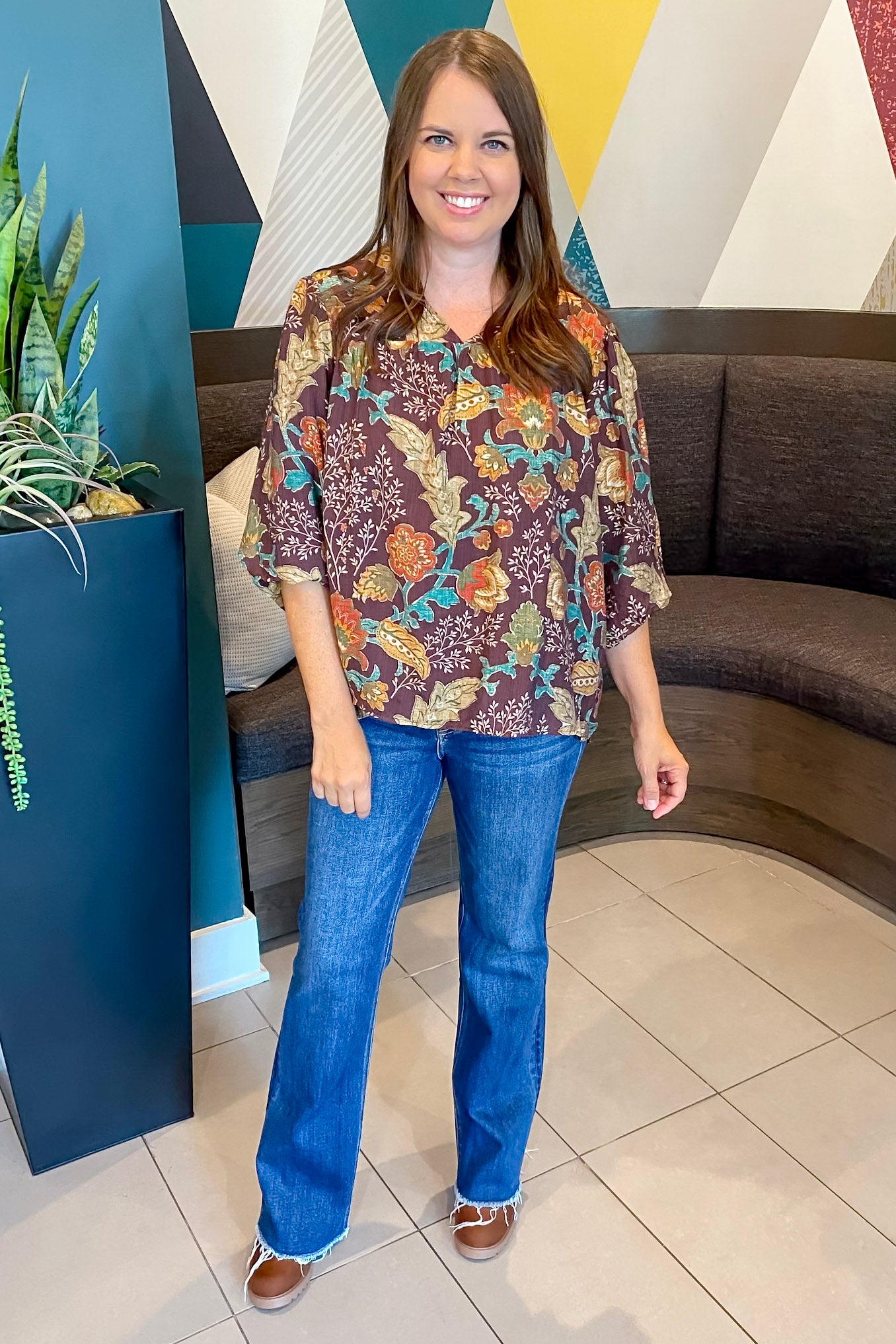 Meet your new fall go-to: the Can You Go Floral Print Brown Top! This breezy, oversized top features a soft black backdrop layered with vintage-inspired florals in greens, yellows, and creamy neutrals. The relaxed silhouette, notched neckline, and billowy sleeves keep it effortlessly flattering and oh-so-easy to wear. It’s the kind of top that feels like a favorite—right out of the closet.