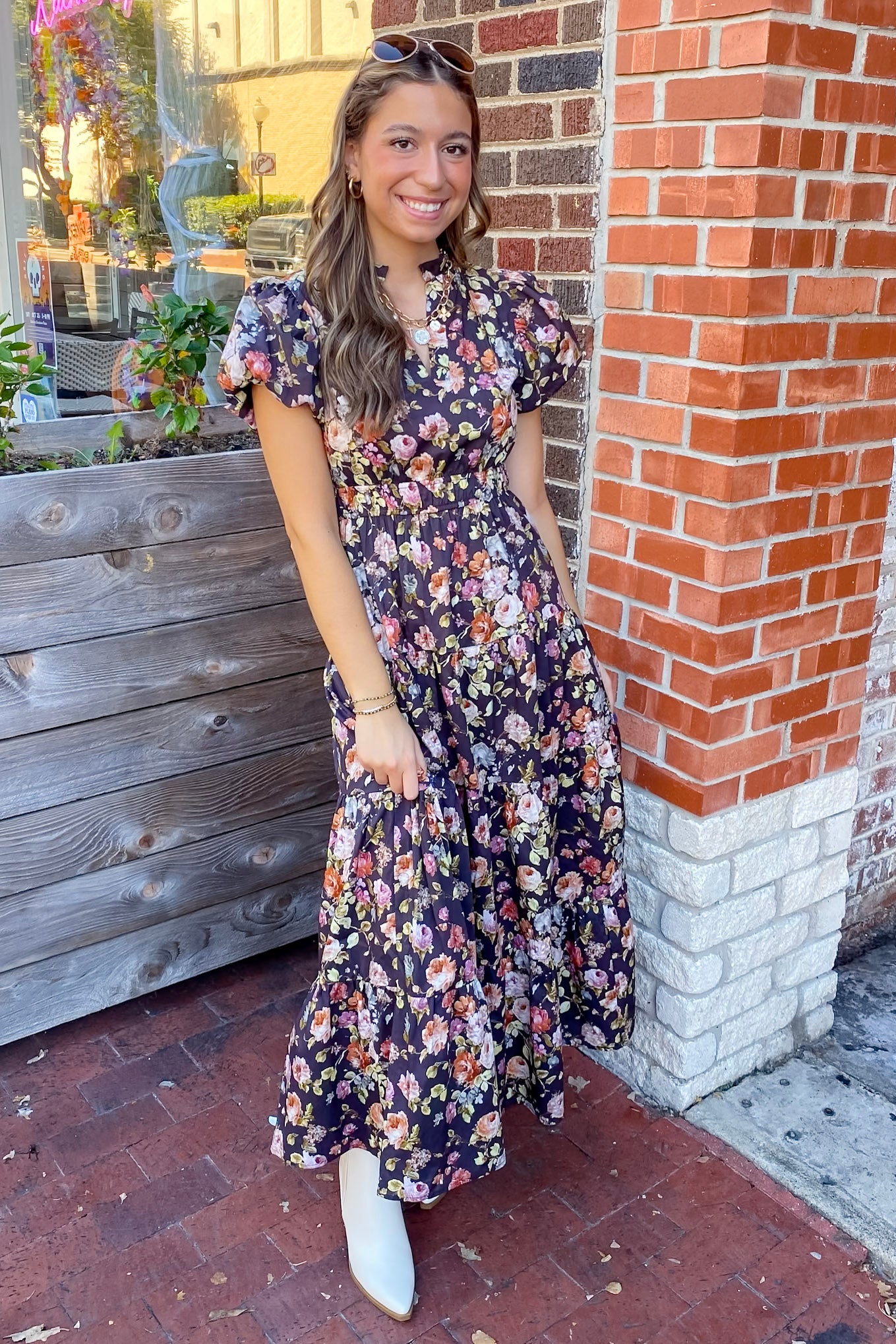 The Flowers on Point Floral Print Chocolate Maxi Dress is your new go-to for feeling feminine and cozy all at once. With a moody floral print that pops against a deep chocolate background, this dress brings all the dreamy fall energy. Puff sleeves add a playful touch while the smocked waist keeps things flattering and comfy. The tiered skirt flows with every step, making it feel equal parts romantic and relaxed. Perfect for twirling, brunching, or just looking cute on a crisp day.