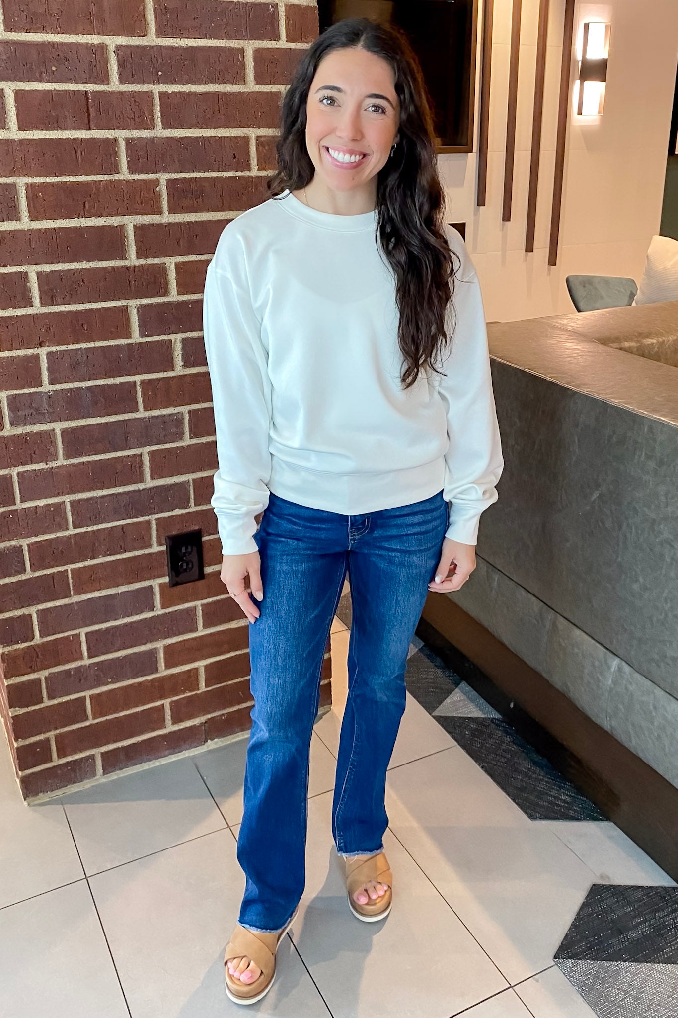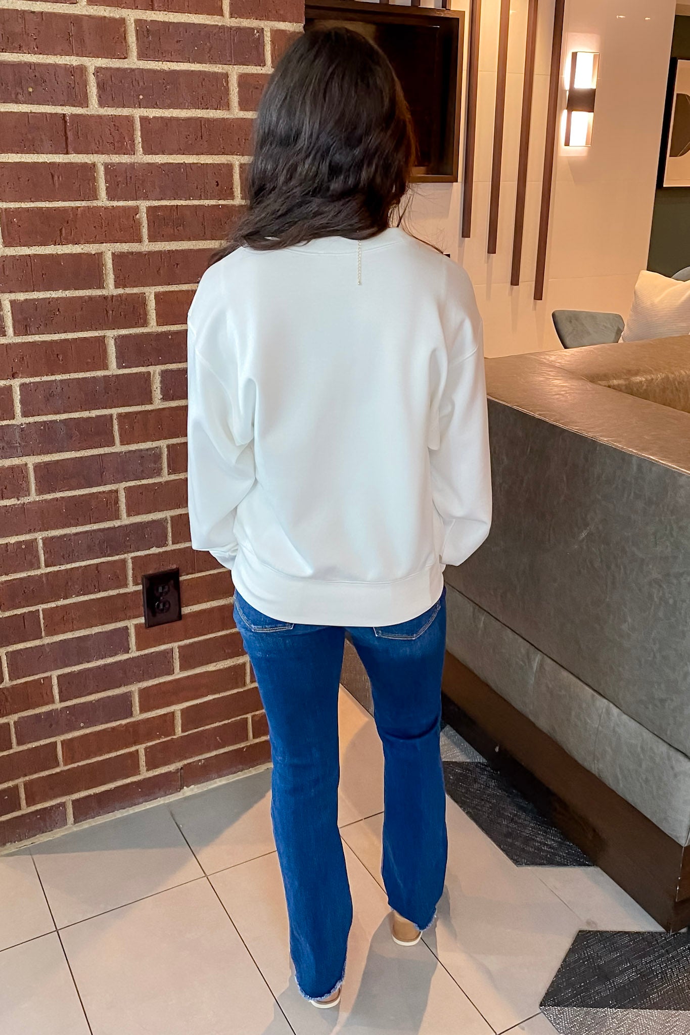 Clean, crisp, and oh-so-cozy — this creamy white sweatshirt is the ultimate cool-weather staple. With its slightly cropped length and structured-but-soft feel, it brings just the right amount of polish to your laid-back looks. Think effortlessly cute with a touch of sporty spice.