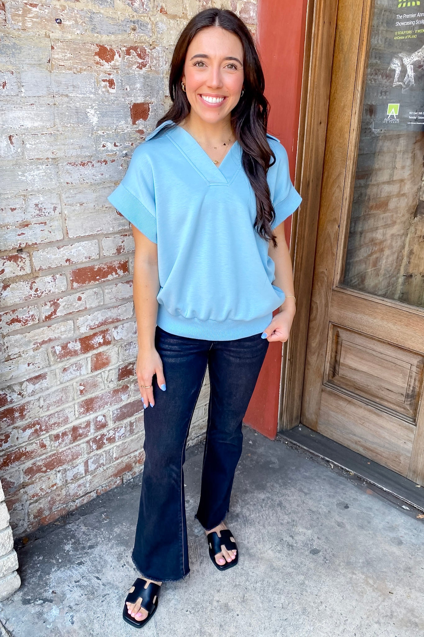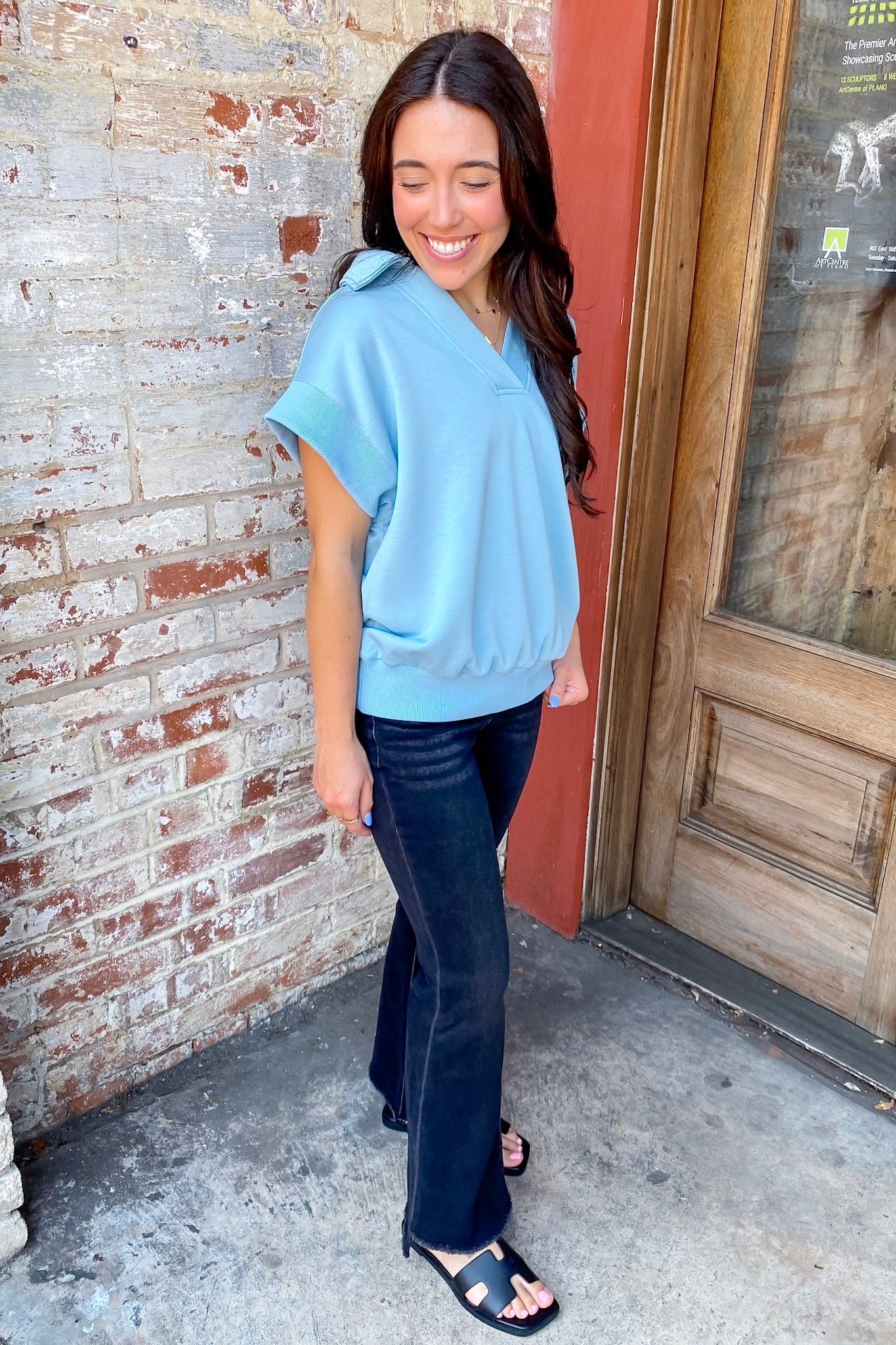 Sporty meets sweet in this blue-colored polo dress that’s made for easy fall layering. The soft sweatshirt material, banded hem, and relaxed fit give off effortless athleisure vibes—while the bold color keeps things playful. Finished with a collared neckline and wide cap sleeves, it’s the perfect throw-on-and-go piece with major style points.