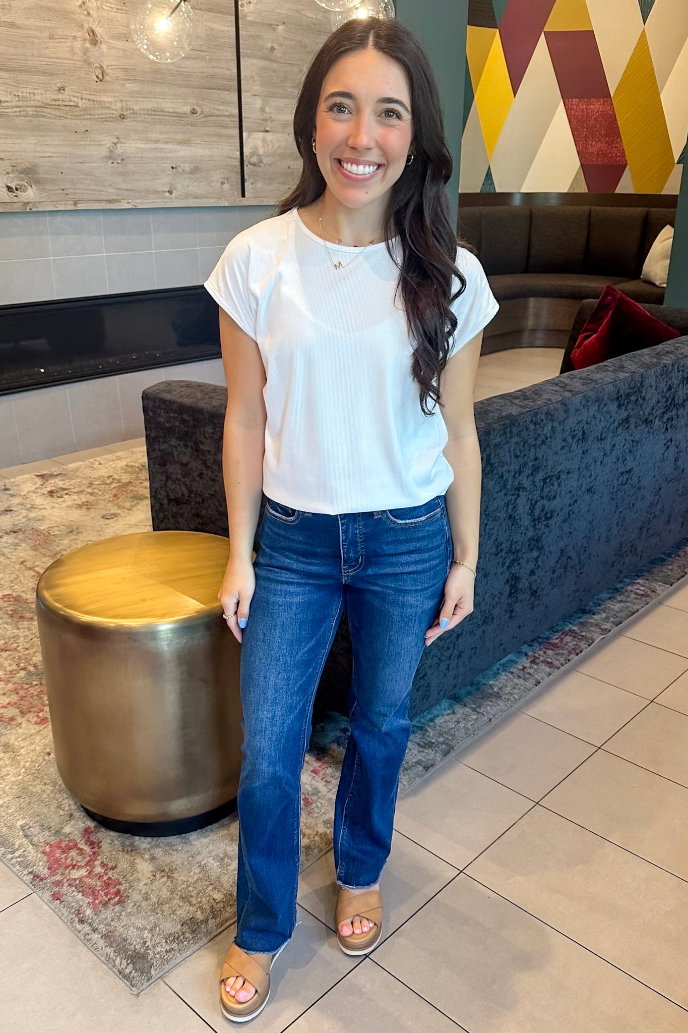 A timeless essential with a touch of charm, this crisp white rolled-sleeve tee is a must-have layering piece for fall. The soft, lightweight fabric feels dreamy on its own, but it’s also perfect for pairing under cozy cardigans, shackets, or jackets. Simple, chic, and endlessly versatile—this is the kind of top you’ll reach for all season long!