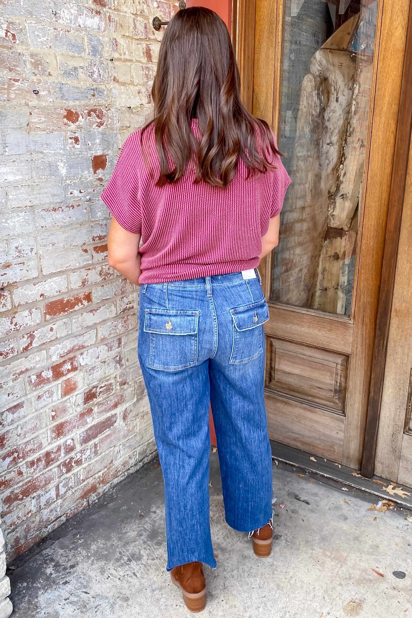 - Straight Leg, Utility Pocket Detail, Raw Hem, Cropped