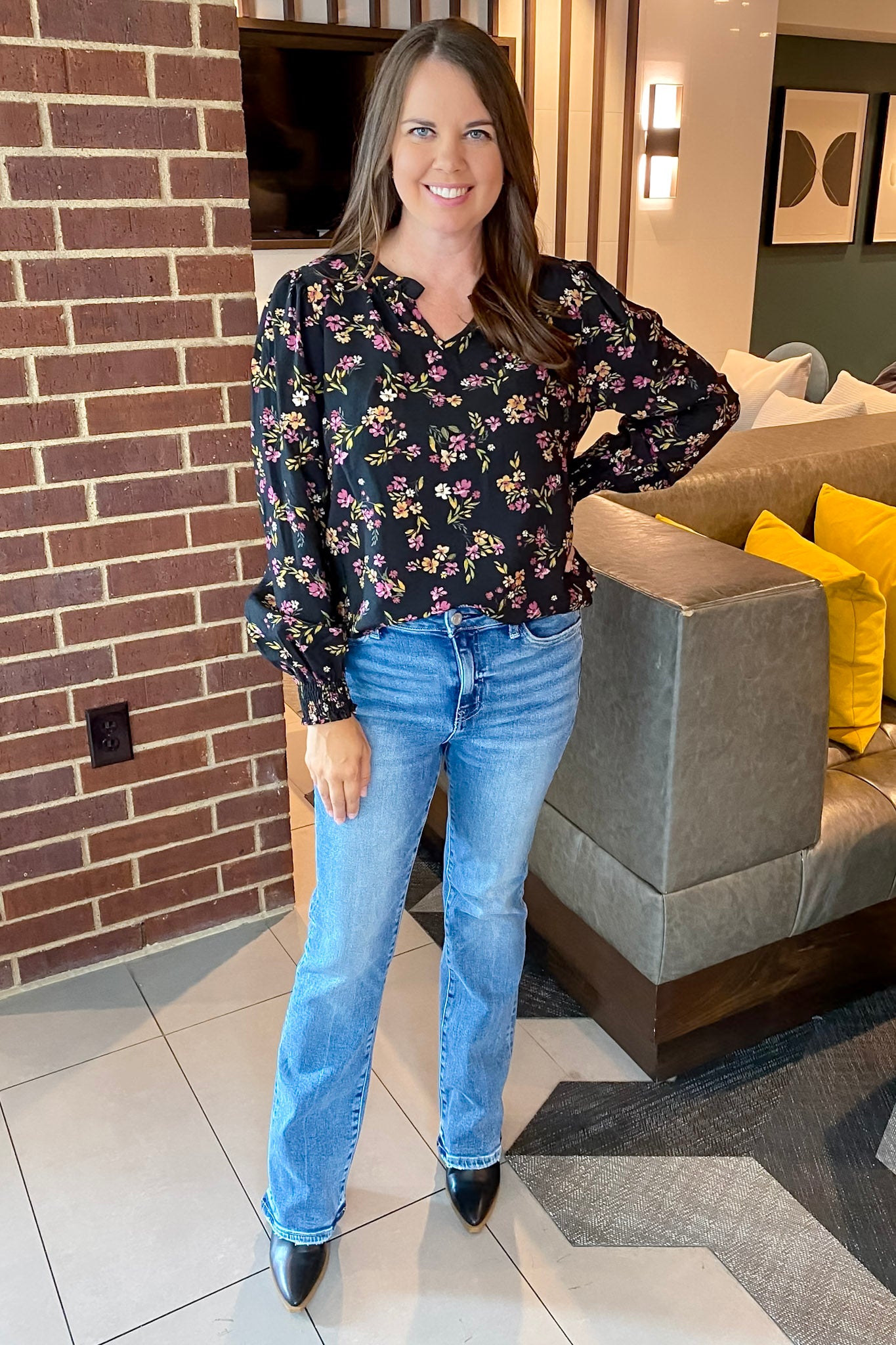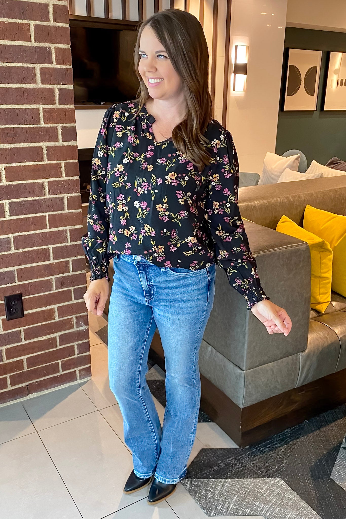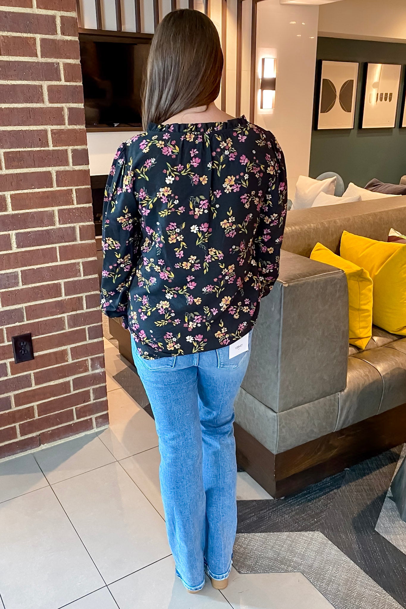 Make room in your closet for this stunner—our Tell Me Why Black Print Top brings the perfect touch of drama for fall and winter. Featuring subtle ruffle detailing at the neckline and cuffs, a soft v-neckline, and billowy long sleeves, this top adds effortless polish whether you're dressing it up or keeping it casual.