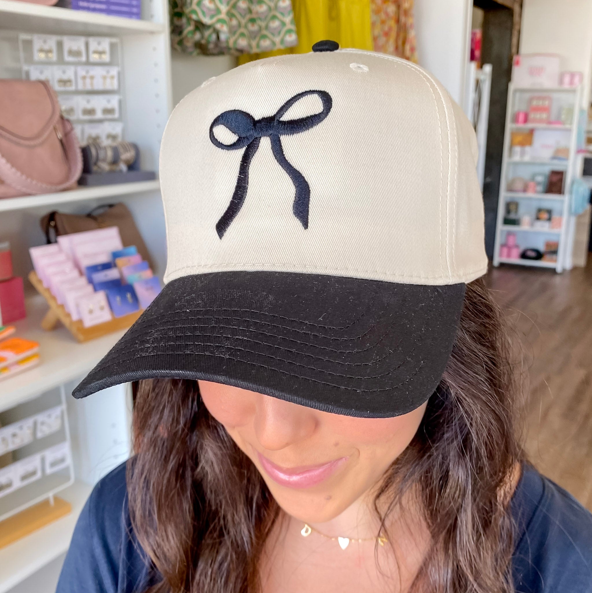 This one’s for the coquette queens and soft girl stunners. Our Black Coquette Bow trucker hat features the viral bow trend in a dreamy black-and-white color palette. The oversized bow embroidery on the front is both bold and feminine, adding a playful twist to a minimal fit. Throw it on with a quilted jacket for the ultimate girly vibe, or pair with your fav loungewear set to dress up a casual day. Whether you're deep into bowcore or just starting your coquette era, this hat pulls it all together.
