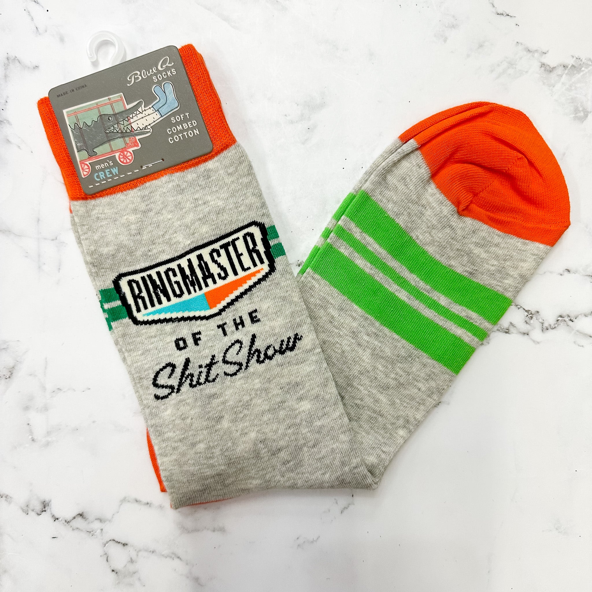Ringmaster of the Shit Show Mens Socks! Every day you deal with clowns, tame lions, and jump through hoops. Plus you have that sweet ringmaster top hat! We're mesmerized by your power and it's damn time you get the attention you deserve! Perfect gift for dads or grandpas of a crazy family!